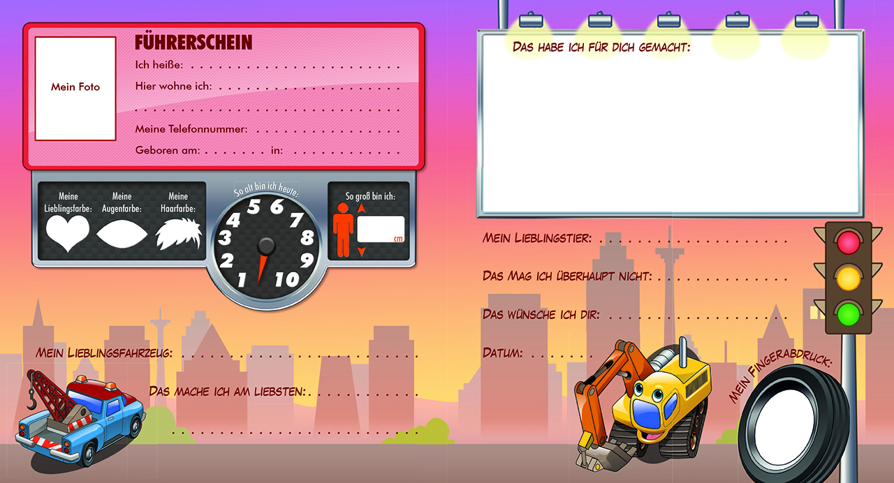 Beliebtes Thema: Fahrzeuge + Wunderschöne farbige Illustrationen + Viel Platz zum Eintragen + Auf den Doppelseiten dieses coolen Eintragbuch es können sich Kindergartenfreunde und alle Fahrzeug fans mit selbst gemalten Bildern, Fingerabdrücken und vielem me...