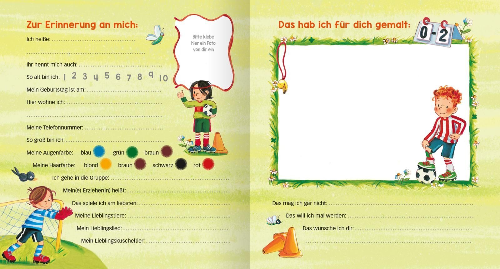 Keine Altersbeschränkung Zur Erinnerung an die Kindergartenzeit Das ideale Freundebuch für kleine Fußball-Freunde: Alle Kindergartenfreunde können sich in diesem Album eintragen. 25 Freundinnen und Freunde haben hier reichlich Platz, um sich mit Bildern und Er...