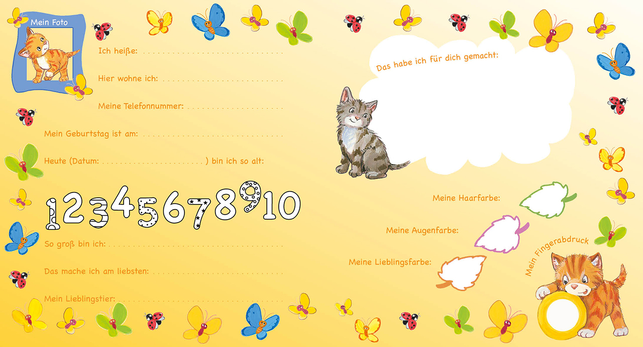 Beliebtes Thema: Tiere + Wunderschöne farbige Illustrationen + Viel Platz zum Eintragen + Auf den Doppelseiten dieses liebevollen Eintragbuch es können sich Kindergartenfreunde und alle Kätzchenfans mit selbst gemalten Bildern, Fingerabdrücken und vielem me...