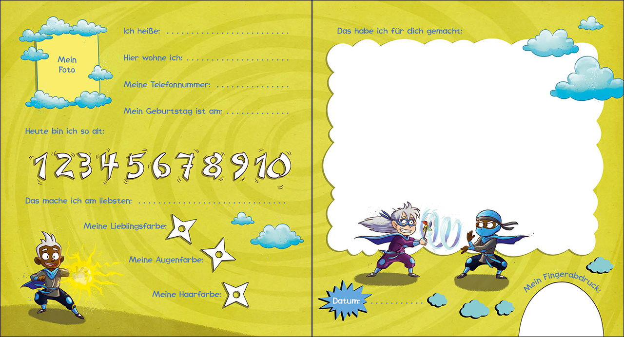 Freundebuch für die Kindergartenzeit + Topthema: Ninjas + F ür Ninjago-Fans + A b 3 Jahren + Mit magnetischem Wechselcover + Viel Platz für Fotos + Viel Platz zum Eintragen + Perfektes Geschenk + Auf den Doppelseiten dieses wundervollen Eintragbuchs können s...