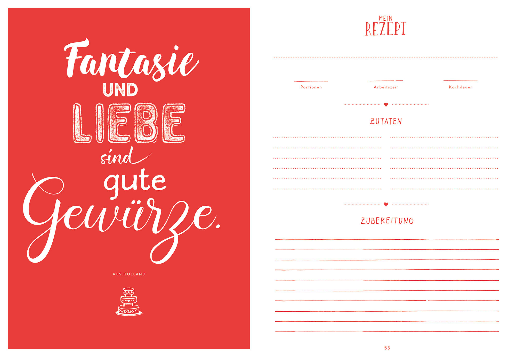 Liebevoll gestaltetes Einschreibheft mit kulinarischen Zitaten und Goldfolienveredelung. Mit separater Zutatenliste und Inhaltsverzeichnis zum Selbstgestalten.