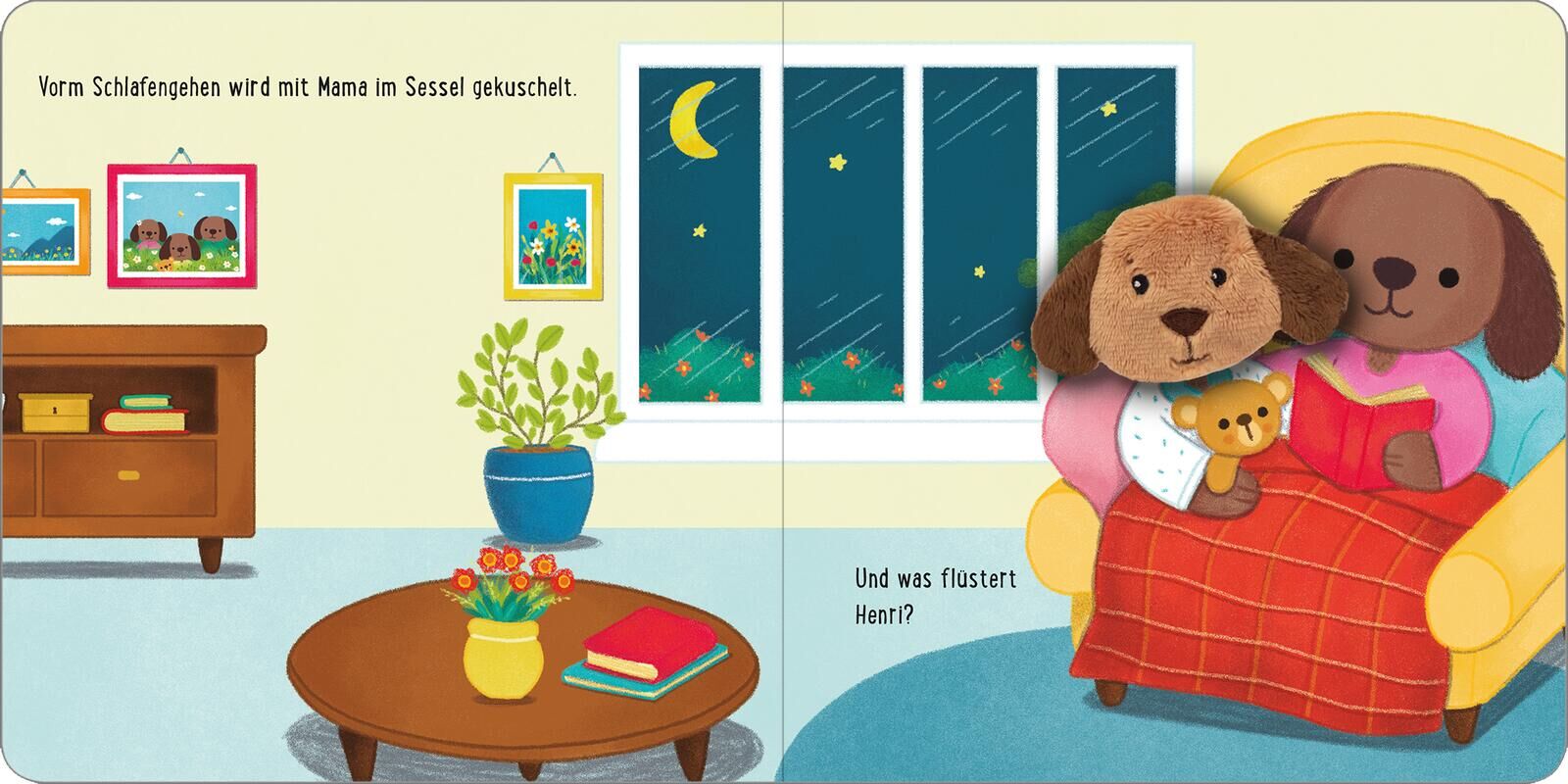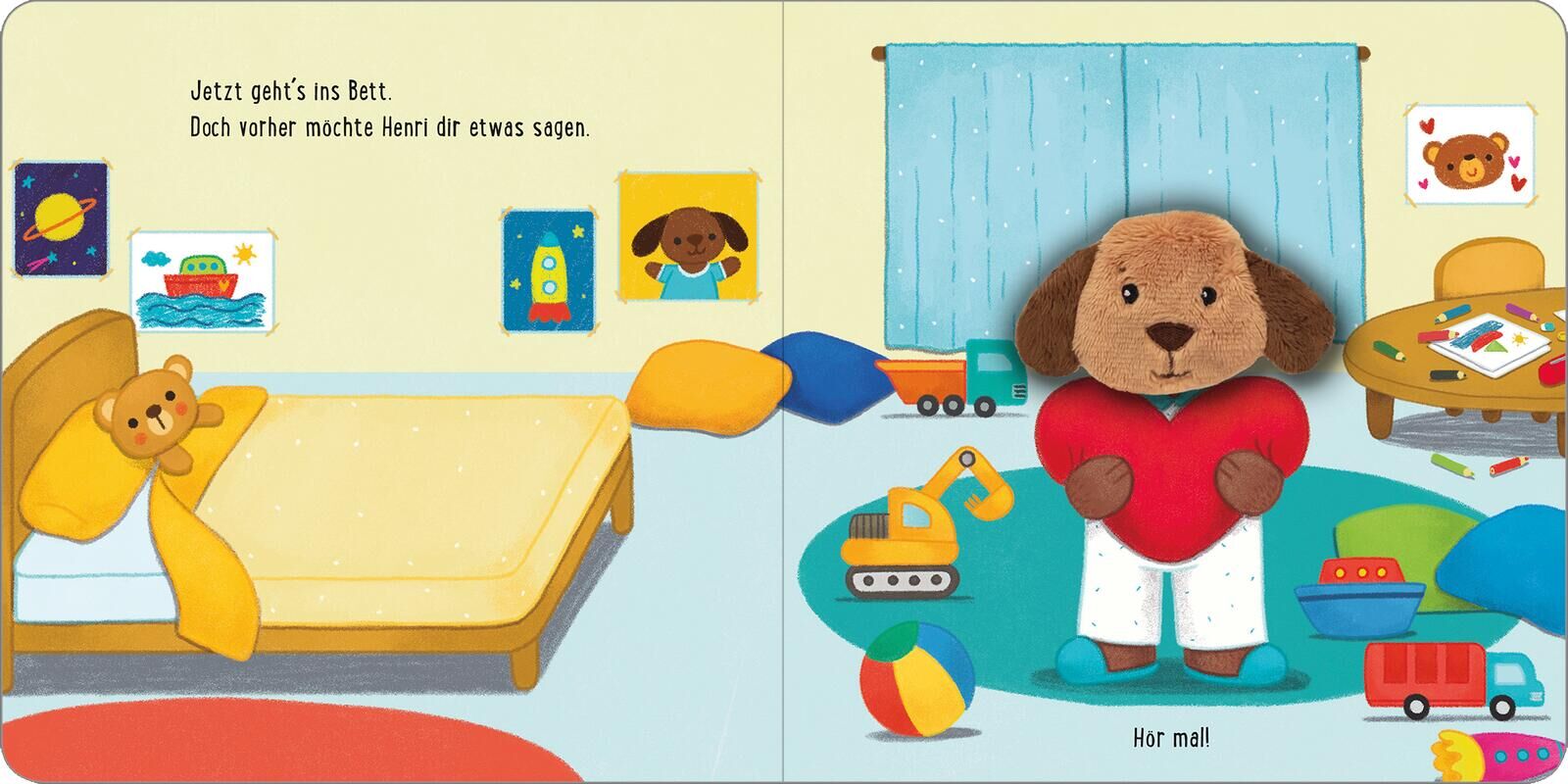 Kuck mal, wer da spricht! Henri, der kleine Hund, liebt seinen Teddy. Der bekommt immer einen dicken Kuss! Und er liebt Papa und Mama, weil die immer für ihn da sind. Und Oma und Opa liebt er auch, denn die haben immer Zeit. Auch seine Freundin Kiki mag er ge...