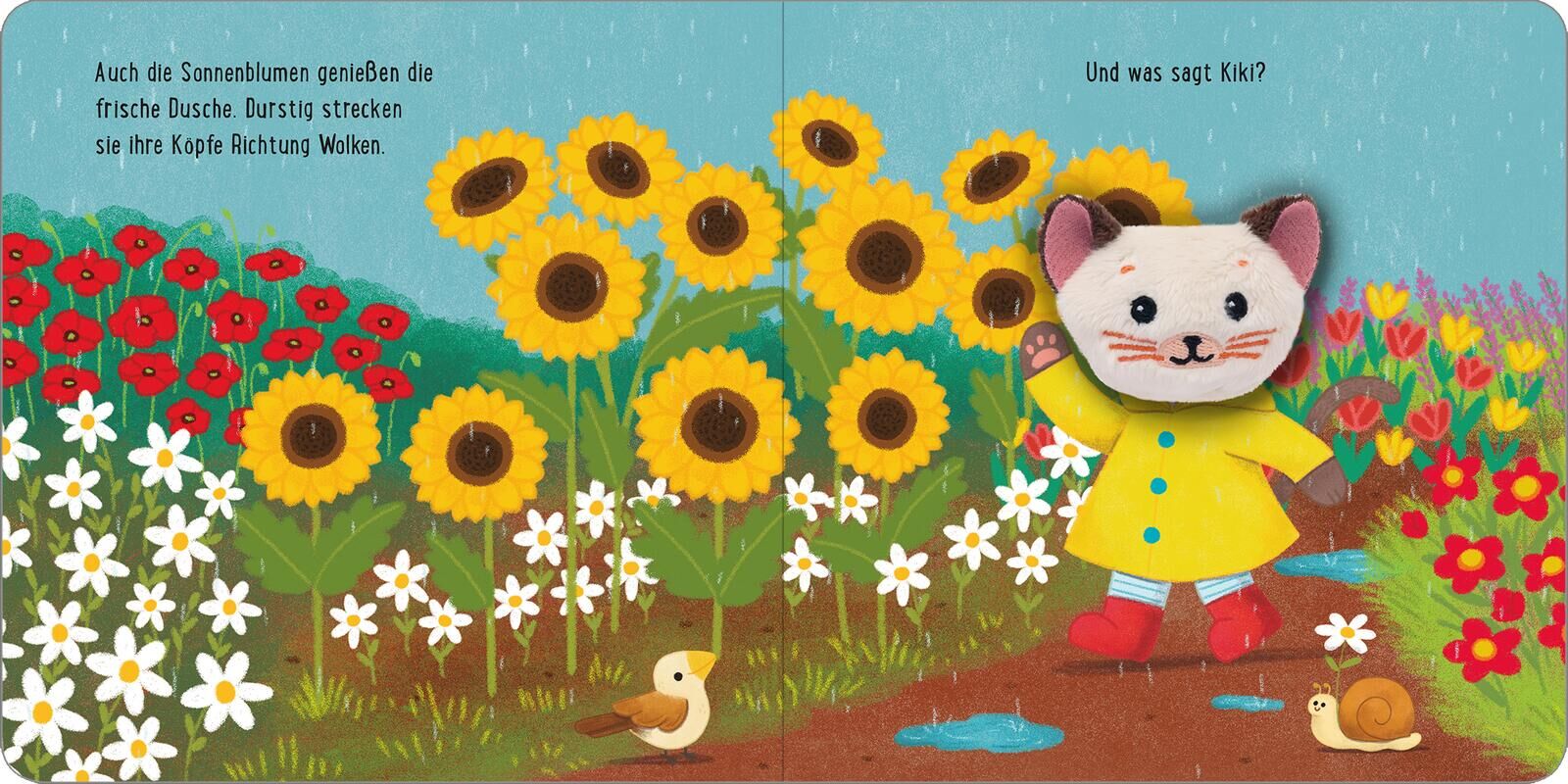Kuck mal, wer da spricht! Kiki, die kleine Katze, liebt Regenwetter. Wenn am Himmel dunkle Wolken aufziehen, zieht sie schnell ihre Gummistiefel an. Begleite Kiki nach draußen und hüpfe mit ihr in die größten Pfützen. Sagt gemeinsam den Regenwürmern hallo und...