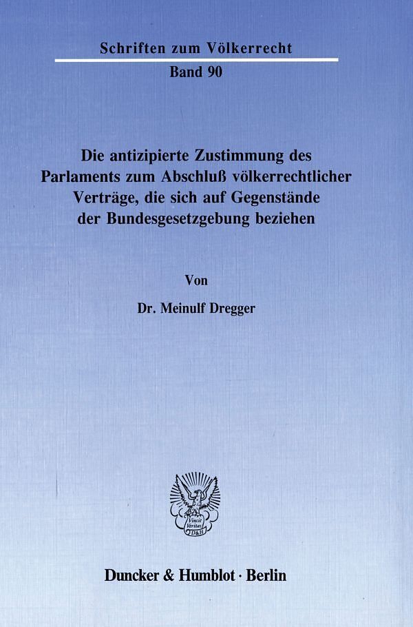Die antizipierte Zustimmung des Parlaments zum Abschluß völkerrechtlicher Verträge, die sich auf Gegenstände der Bundesgesetzgebung beziehen.