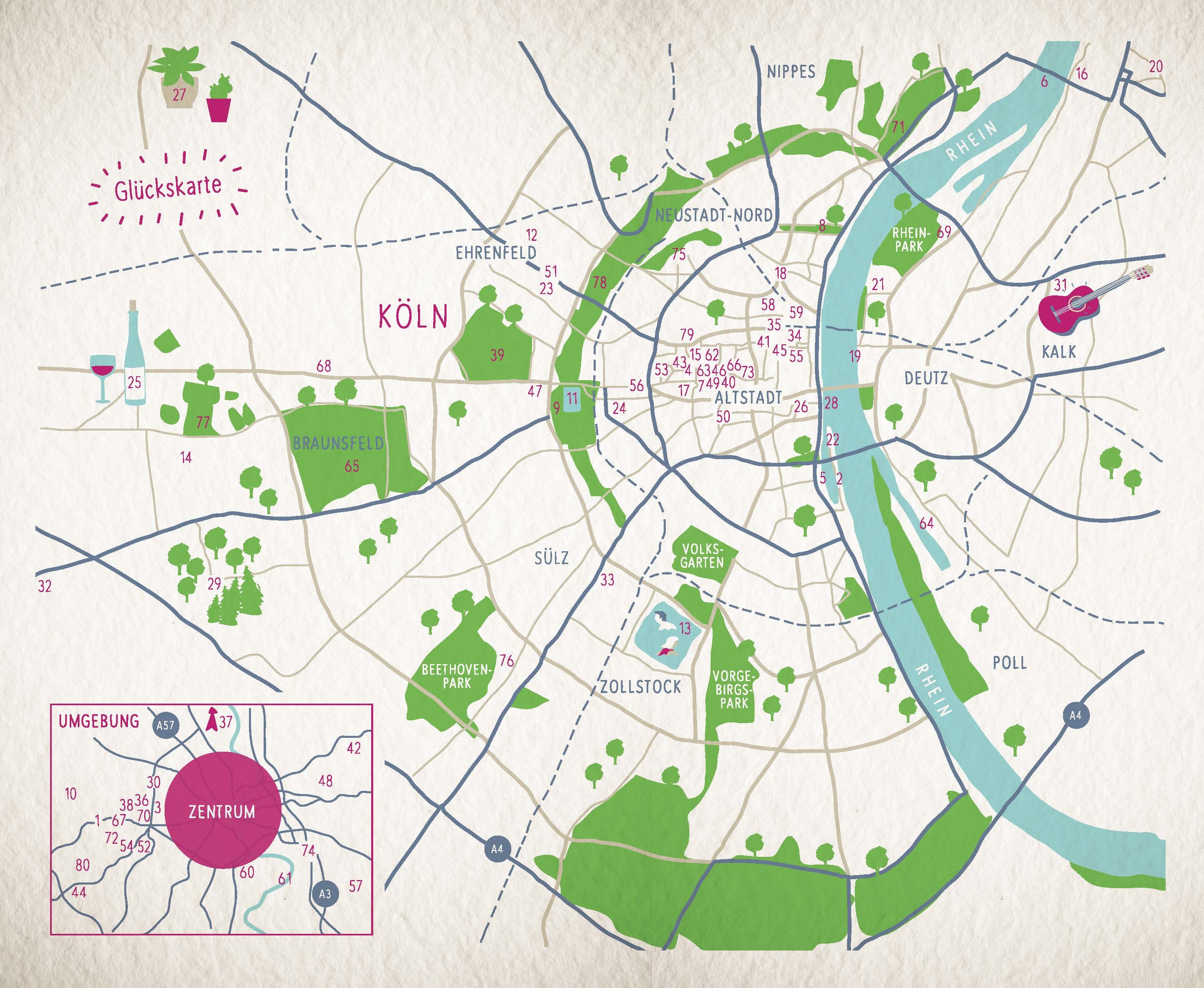 Süße Törtchen in Nippes, Kronleuchter in der Kanalisation, eine Wohngemeinschaft im Belgischen Viertel, die Gemüse-Parzelle in Dellbrück in Köln glücklich zu werden ist mit Glücksorte in Köln ganz leicht. Gleich 80 bezaubernde Orte hat Melanie Brozeit in der D...