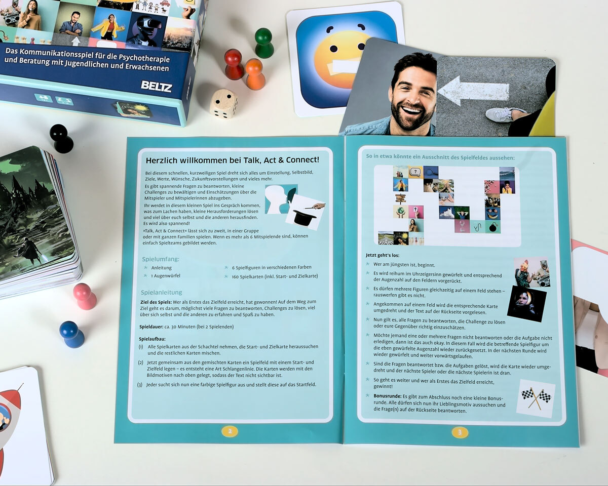 »Talk, Act & Connect« ist ein einfaches und schnelles Kommunikations- und Aktionsspiel für Jugendliche und (junge) Erwachsene. »Wie wirke ich auf andere?«, »Was stresst mich?«, »Wie reagiere ich in Konfliktsituationen?«, »Welche Ziele habe ich im Leben?« d...
