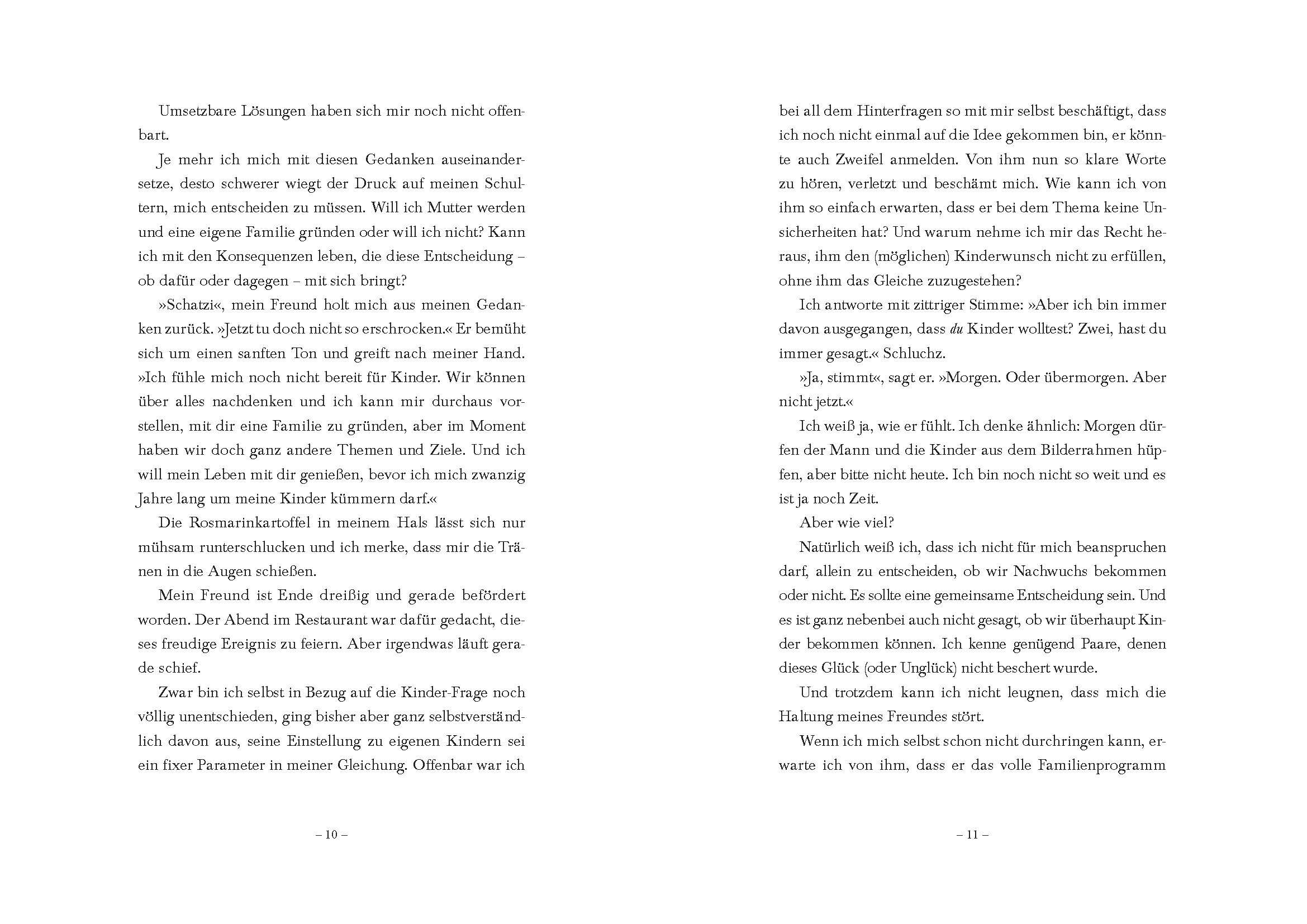 Mit Ende 30 ist Melanie Hughes immer noch unschlüssig, ob sie überhaupt Kinder haben möchte. Ihre biologische Uhr tickt einfach nicht so laut wie bei anderen. Und was spricht nicht alles gegen Kinder! Karrierestopp, Rolle des Hausmütterchens, keine Zeit mehr ...