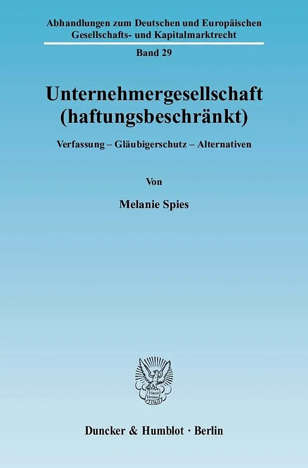 Melanie Spies widmet sich in ihrer Dissertation den praktisch wie rechtswissenschaftlich maßgeblichen Grundfragen der neuen Unternehmergesellschaft (haftungsbeschränkt). Die Autorin erläutert die Auswirkungen der weitgehenden Disponibilität des Mindestkapitals...