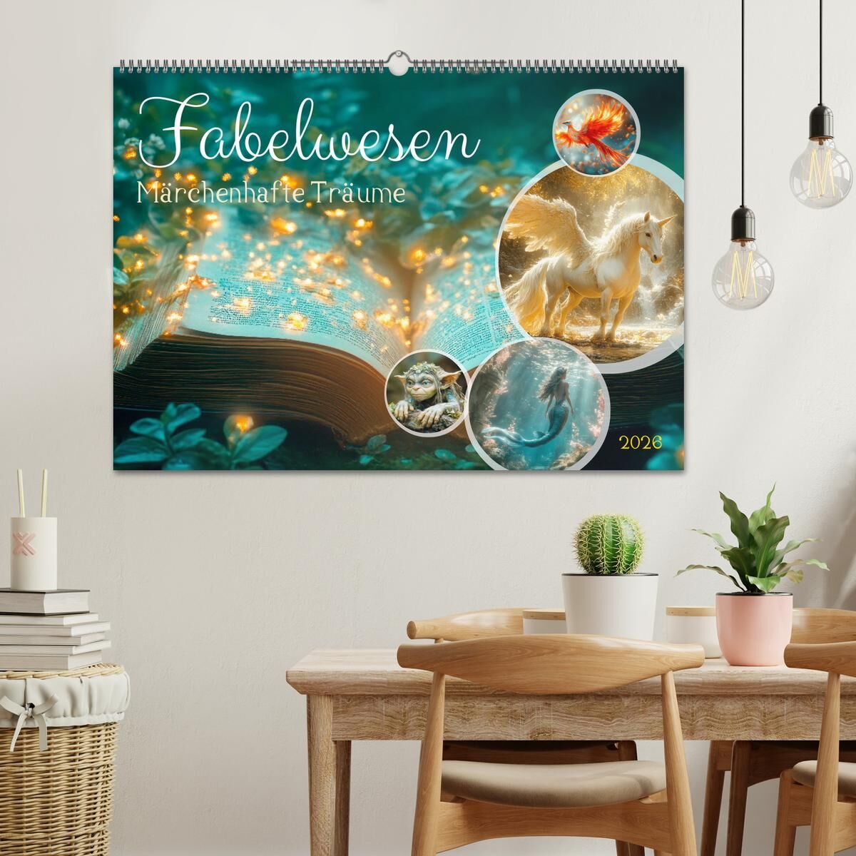 Stellen Sie sich einen bezaubernden Kalender voller märchenhafter Fantasiewesen und Orte vor, perfekt für Kinder. Jeden Monat gibt es ein neues Fabelmotiv - ein freundlicher Yeti, der in verschneiten Bergen spielt, eine anmutige Meerjungfrau, die in einem male...