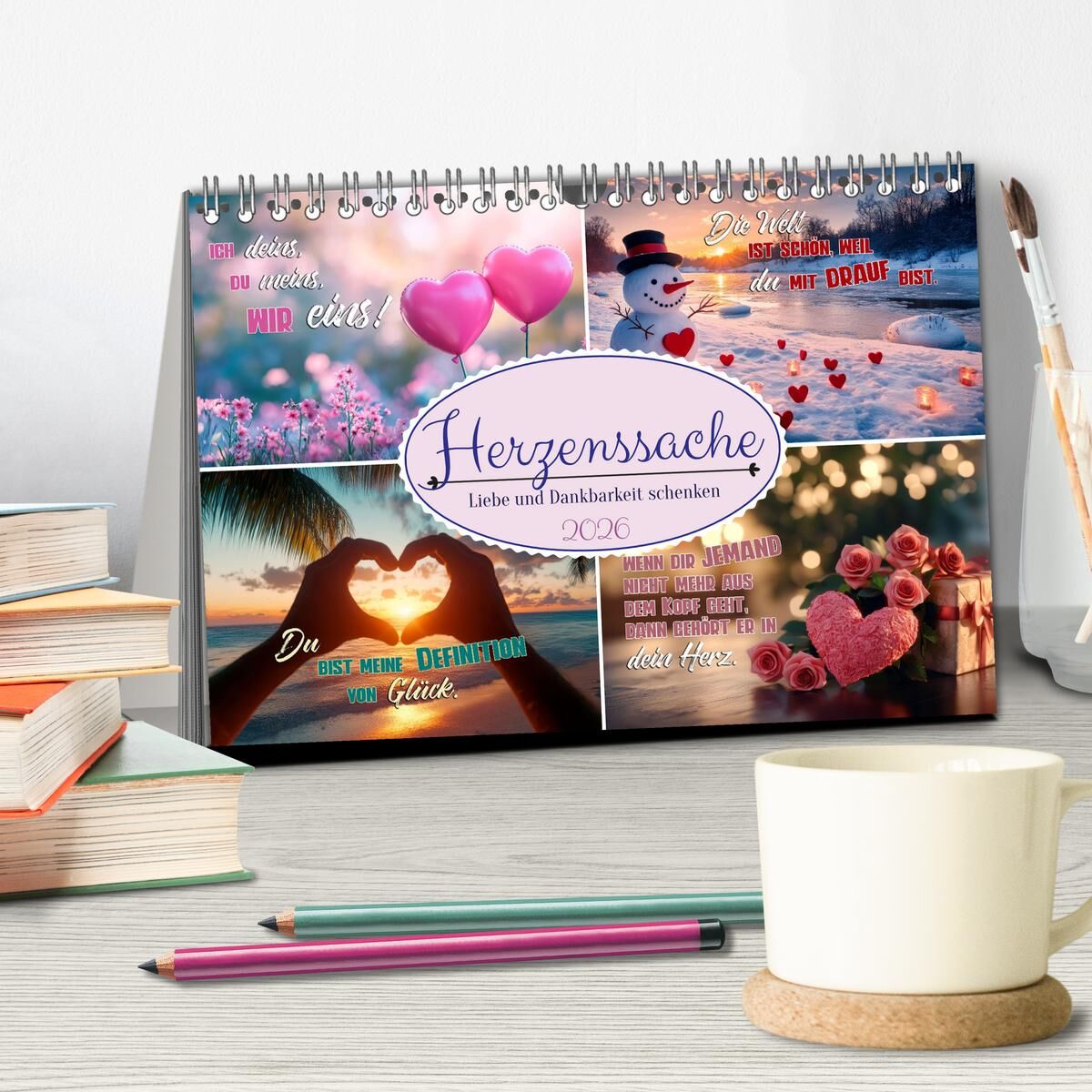 HERZENSSACHE Liebe und Dankbarkeit schenken (Tischkalender 2026 DIN A5 quer), CALVENDO Monatskalender