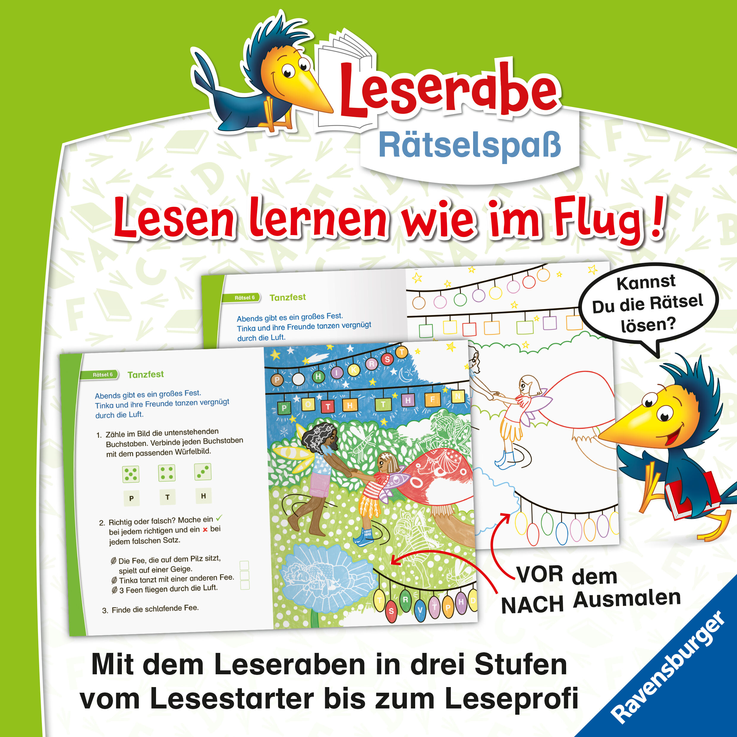 Leserabe Rätselspaß trifft auf magisches Papier! Malen, rätseln und dabei erstes Lesen erleben mit den Leserabe Zauber-Malrätseln gelingt das spielend leicht! Kinder ab 5 Jahren malen altersgerechte Bilder zu ihrem Lieblingsthema Feen aus, entdecken dabei verb...