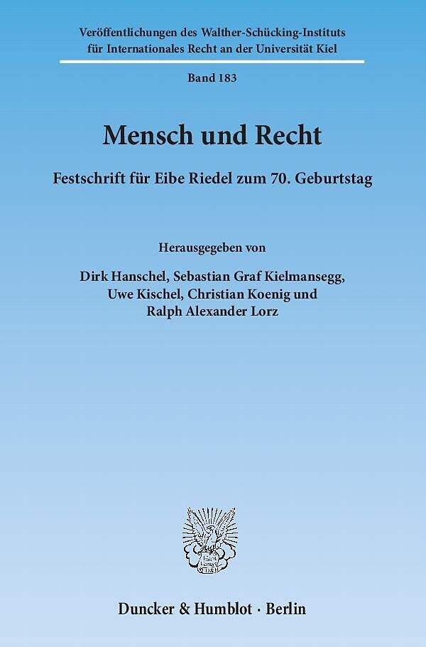 Menschenrechte sind nach unserem heutigen Verständnis dem Wesen des Menschen immanent und doch zugleich eine Entdeckung der Neuzeit. Gerade im Völkerrecht hat es lange gedauert, bis die Mediatisierung des Individuums durch den Staat überwunden und der einzelne Mensch als Subjekt mit eigenen Rechten etabliert werden konnte. Seither allerdings ist unumstritten, dass der Mensch im Mittelpunkt des Rechts und aller seiner Teilordnungen stehen muss. Das bringt der Titel »Mensch und Recht« der Festschrift für Eibe Riedel auf den Punkt. Der Jubilar hat sein ganzes akademisches Leben und Wirken der Festigung dieser zentralen Stellung des Menschen im Recht gewidmet. Seit der Entwicklung seiner bis heute maßstabsetzenden Theorie der Menschenrechtsstandards hat er in vielfältigen Publikationen zur theoretischen Durchdringung und dogmatischen Weiterentwicklung des internationalen Menschenrechtsschutzes beigetragen. Aber nicht nur in der Theorie, sondern auch in zahlreichen praktischen Verwendungen hat er dieses Anliegen maßgeblich vorangetrieben. Den wirtschaftlichen, sozialen und kulturellen Menschenrechten, für die er als Vertreter der Bundesrepublik Deutschland viele Jahre lang im zuständigen UN-Ausschuss saß, gehörte dabei immer sein besonderes Engagement. Der vorliegende Band folgt dieser thematischen Schwerpunktsetzung, greift aber zugleich weiter aus und illustriert die zentrale Position des Individuums im nationalen und speziell im internationalen Recht anhand zahlreicher Facetten. Dem akademischen Wirken des Jubilars entsprechend stehen die theoretische Grundlegung des völkerrechtlichen Menschenrechtsschutzes und ihr praktischer Niederschlag speziell im Feld der wirtschaftlichen, sozialen und kulturellen Rechte am Beginn der Festschrift. Die enge Verflechtung dieser Rechte mit umwelt- und wirtschaftsrechtlichen Fragestellungen und ihre verfahrensmäßige Um- und Durchsetzung bilden weitere Konzentrationspunkte der Publikation. Schließlich nimmt eine Reihe von Beiträgen die Rolle des Menschen in den Blick, die er nicht nur als Subjekt, sondern auch als Gestalter des Rechts einnimmt. Damit zeigt die Festschrift die ganze Breite des Spektrums, in der sich das Individuum im Recht bewegt.