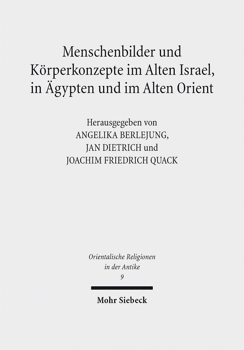 Ideas of man and concepts of the body are closely linked, and are a key factor in defining anthropological theories and problems. In addition, they are closely connected to the social structure of each cultural region, which itself has a continuous influence o...Ideas of man and concepts of the body are closely linked, and are a key factor in defining anthropological theories and problems. In addition, they are closely connected to the social structure of each cultural region, which itself has a continuous influence on human actions and attitudes, but which at the same time is also the result of human actions and attitudes. Scholars from various disciplines used this as their basis to explore the subject in their own cultural field (Old Testament/Palestine, Egypt and the Ancient Near East), each of them taking the perspective of their own methodological approach. The studies incorporate both, text and image sources. It is the authors' common goal to provide a precise description of specific anthropological developments which are dependent on time and culture and to include a discussion of basic issues of the conditio humana.