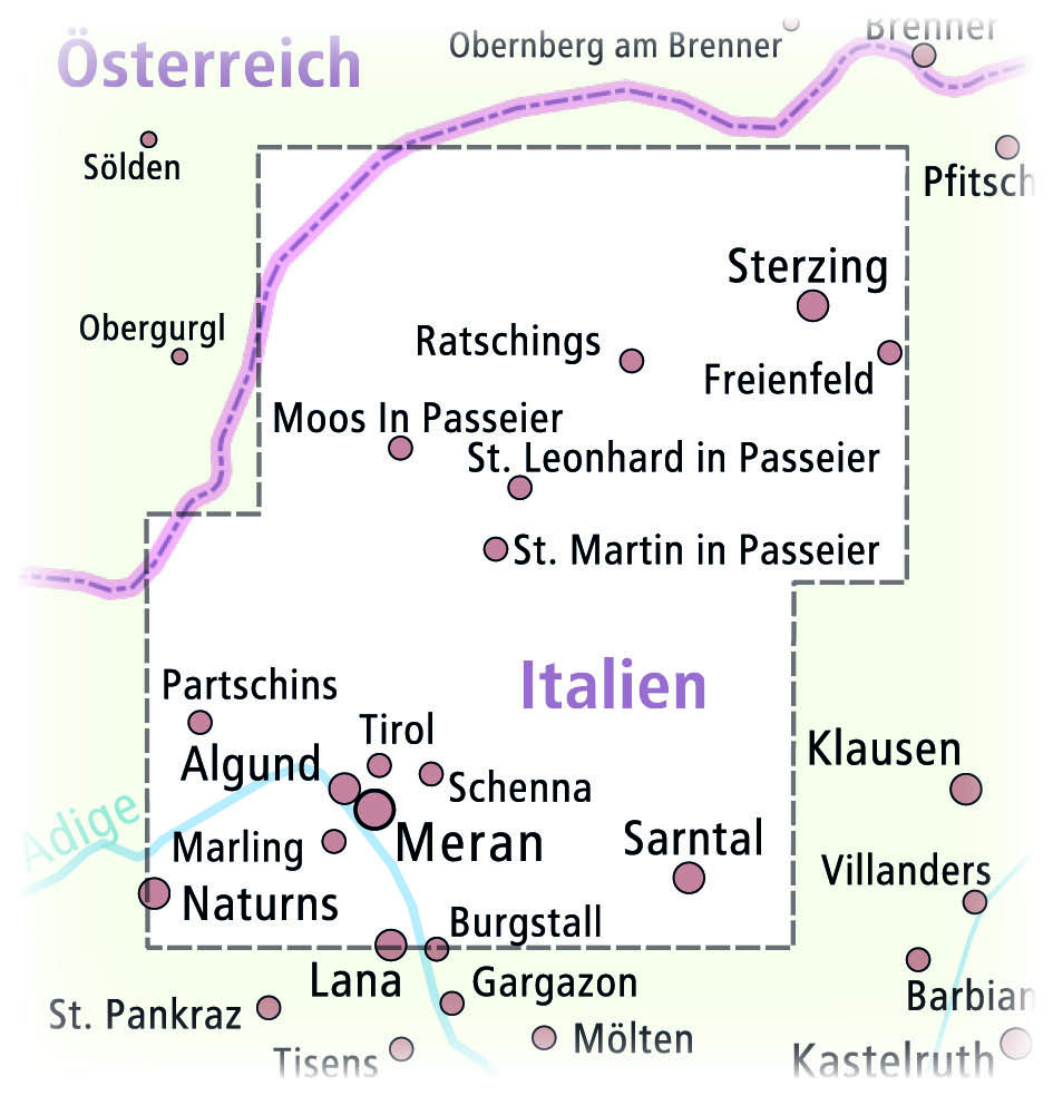 Das Meraner Land zählt zu den vielfältigsten Regionen des Alpenraums. Abgeschirmt von den mehr als 3.000 m ü. NN hohen Bergen, die für das milde, alpin-mediterrane Klima sorgen, bietet das Meraner Land alpine Aktivitäten in allen Höhenlagen und Schwierigkeitsg...