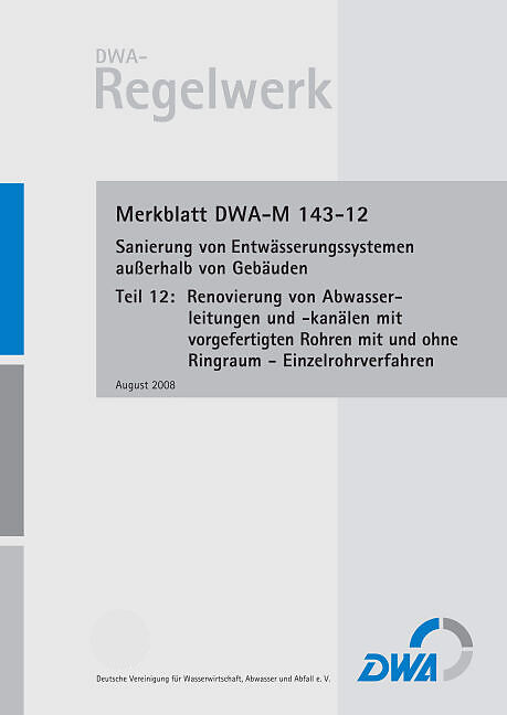 Das Merkblatt befasst sich mit der grabenlosen Renovierung von erdverlegten Abwasserleitungen und -kanälen durch Auskleidung mit vorgefertigten Rohren mit und ohne Ringraum im Einzelrohrverfahren. Die Auskleidung mit vorgefertigten Einzelrohren ist eine umwelt...