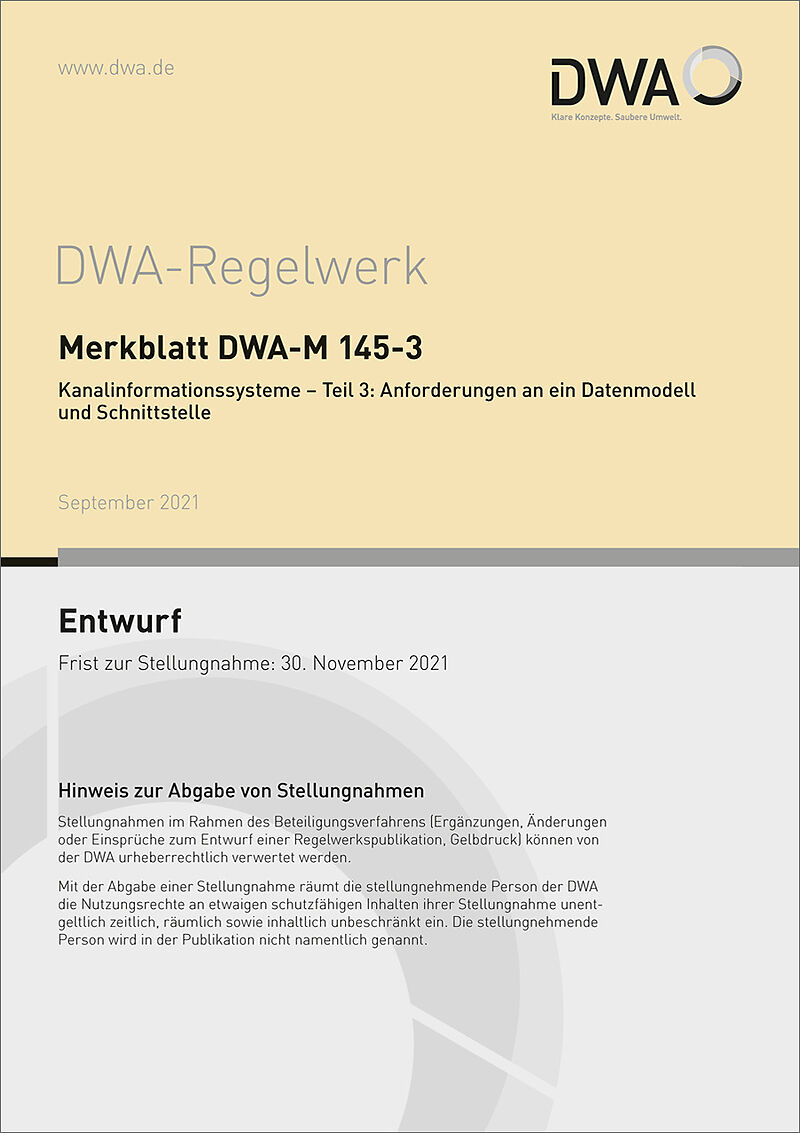 Im Entwurf sind die Anforderungen an das Datenmodell eines Kanalinformationssystems beschrieben. Verbunden mit den Modellanforderungen sind die Grundzüge des allgemeinen DWA-Austauschformats für Daten festgelegt. Die aktuell gültige Fassung der Formatbeschreib...