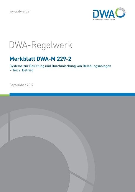 Das Merkblatt DWA-M 229-2 gilt für Belüftungs- und Durchmischungseinrichtungen in kommunalen Belebungsanlagen mit üblichen Feststoffgehalten im Belebungsbecken zwischen TSBB = 2 g/l und TSBB = 5 g/l. Die Gültigkeit der Betriebsempfehlungen in diesem Merkblatt ...