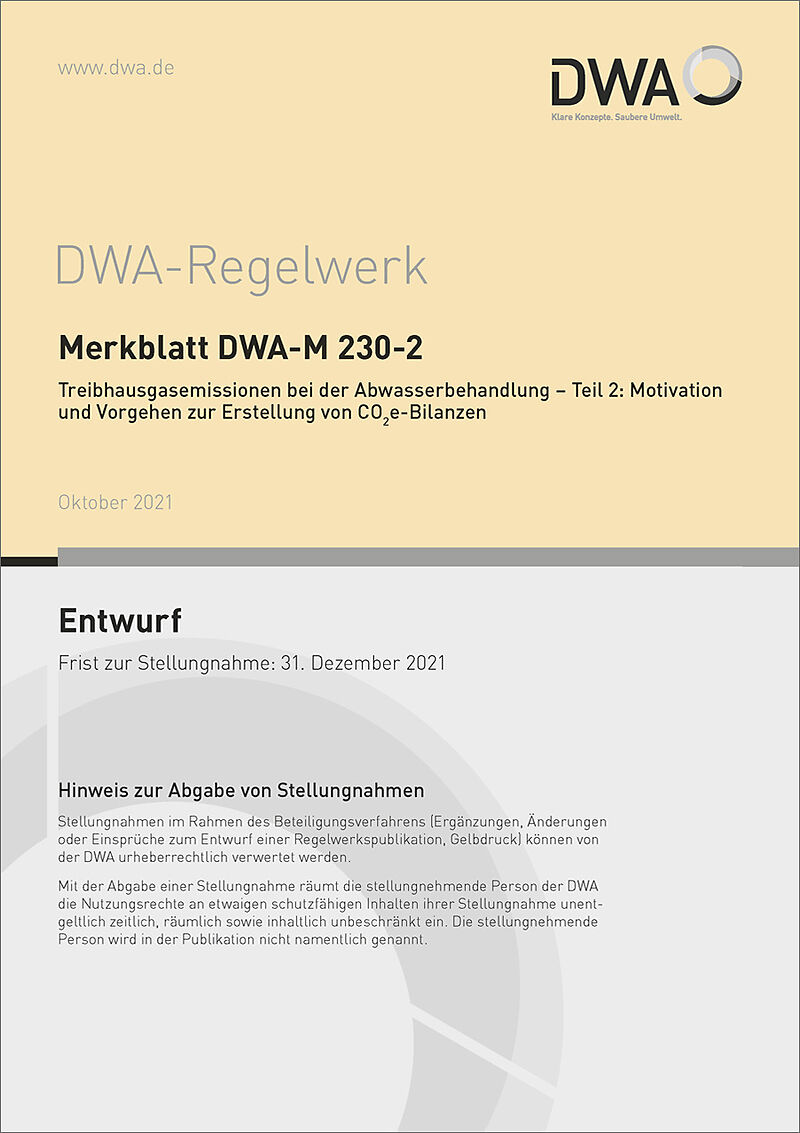 Mit den ersten beiden Teilen des Merkblattreihe 230 werden Betreiber und Planende unterstützt, Treibhausgasemissionen bei der Abwasserbehandlung zu erfassen und zu bewerten. Teil 2 behandelt die Erstellung von Bilanzen als Grundlage zur Treibhausgas-Emission a...