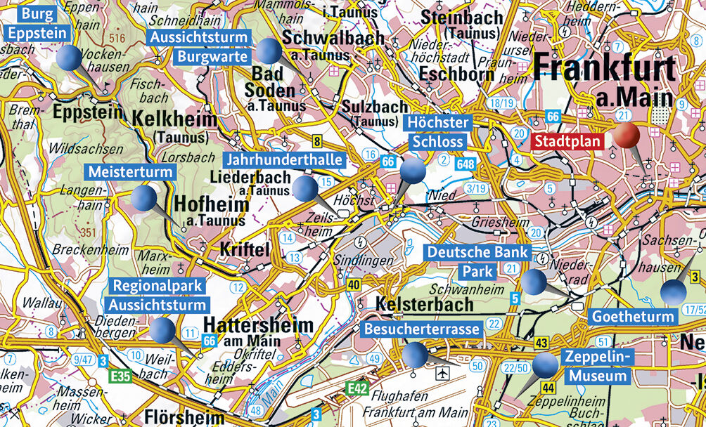 Dieses großformatige Printprodukt (ca. 89 x 102 cm) ist beidseitig bedruckt und im handlichen Landkartenformat gefaltet. Die Vorderseite zeigt die Umgrenzung der Metropolregion im Maßstab 1:250.000. Auf der topographischen Karte sind Signaturen für Siedlungsob...