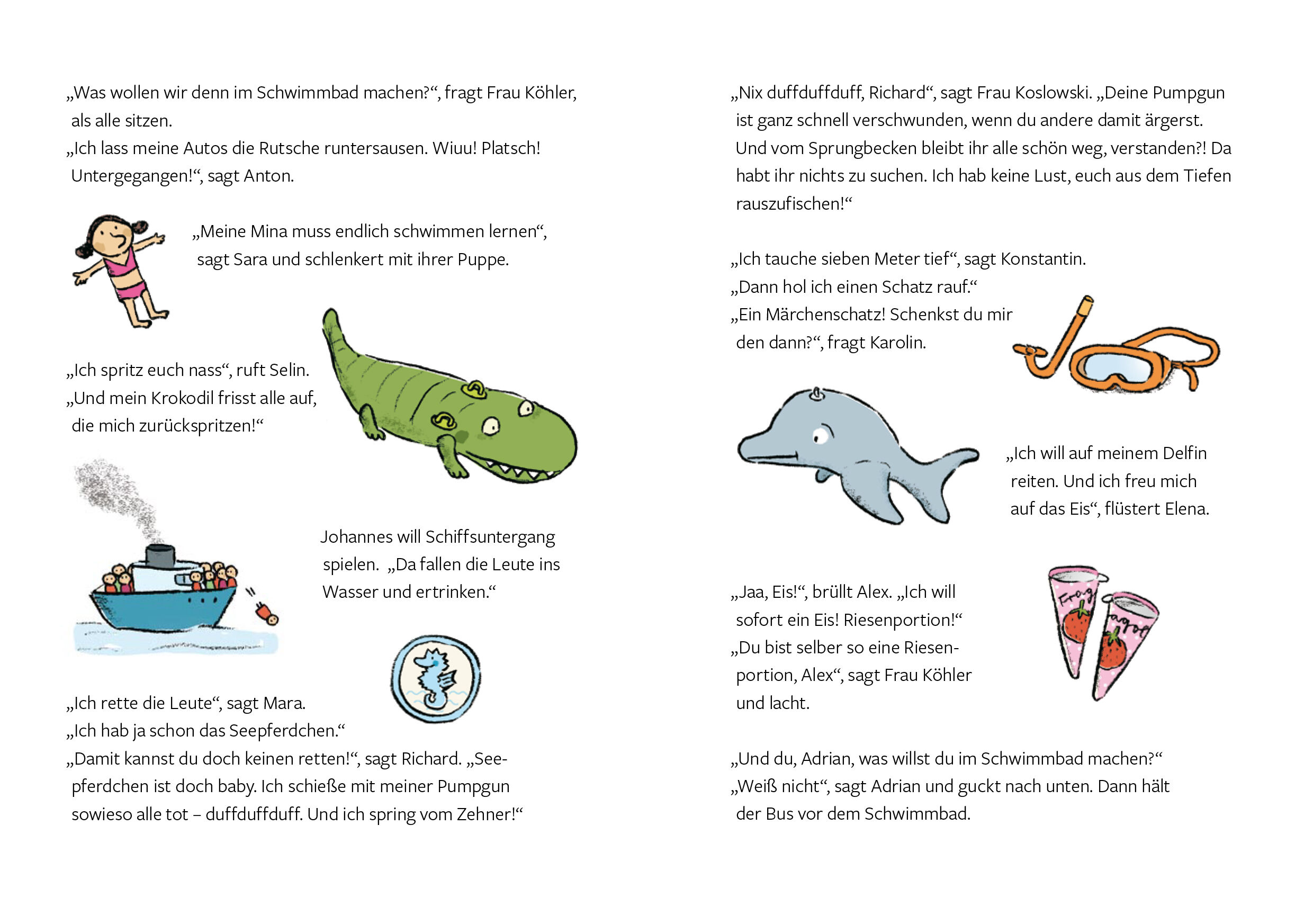 Riesenplatscher, Wespenstich, Eis und eine Mutprobe am Dreier-Sprungbrett: ein Freibadausflug mit allem, was dazugehört. Die wilden Zwerge werden bei uns zu Hause heiß geliebt. Immer, wenn ich in Deutschland bin, wundere ich mich, dass die in den Buchhandlunge...