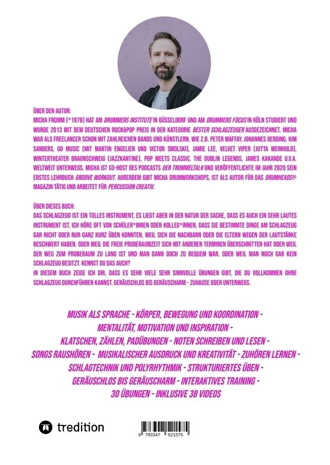 Silent Drum Practice - interaktives Schlagzeugbuch mit 30 Übungen und 38 Videos für Anfänger*innen und Fortgeschrittene