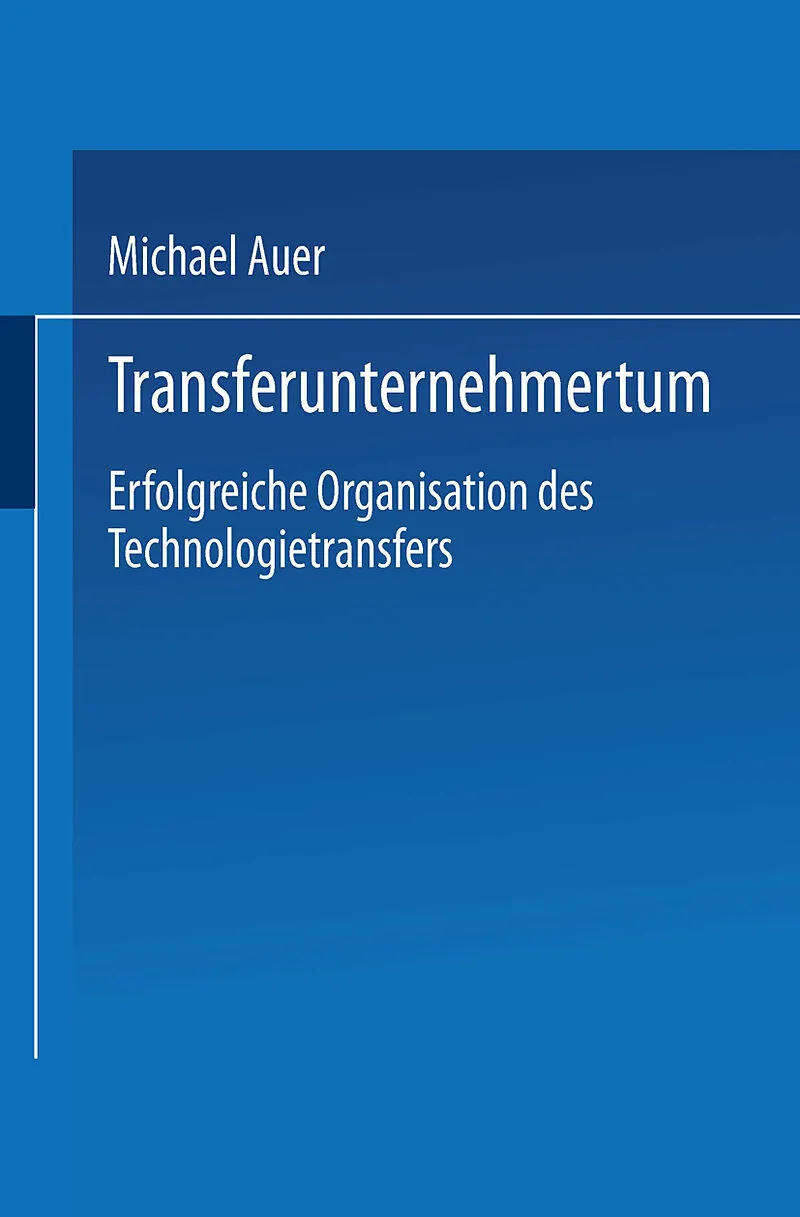 Für einen erfolgreichen Transfer technologischen Wissens aus Hochschulen und Forschungseinrichtungen in industrielle Anwendungen sind geeignete Personen und Organisationen erforderlich. Michael Auer präsentiert mit seinem Modell des TransferUNternehmertums (TU...