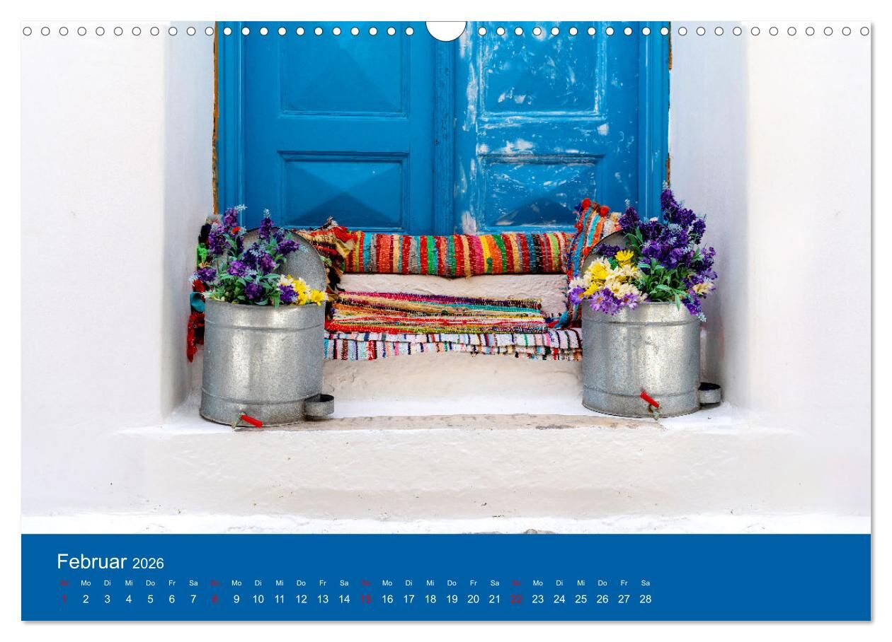 Erlebe Griechenlands Schönheit mit dem Mykonos-Kalender - einem liebevoll gestalteten Griechenland Kalender voller faszinierender Mykonos Bilder. Jeder Monat nimmt dich mit auf eine Reise zu den malerischen Ecken der griechischen Insel: weiße Fassaden, Windmüh...