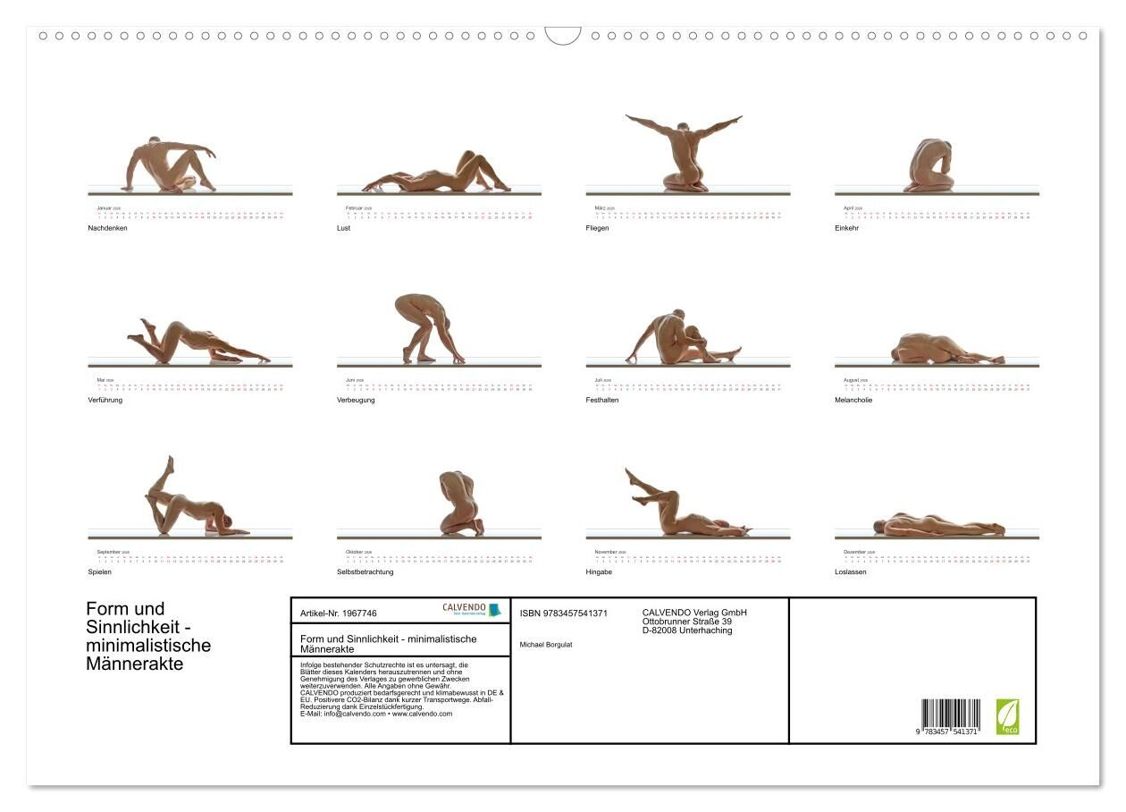 Form und Sinnlichkeit - minimalistische Männerakte (Wandkalender 2026 DIN A2 quer), CALVENDO Monatskalender
