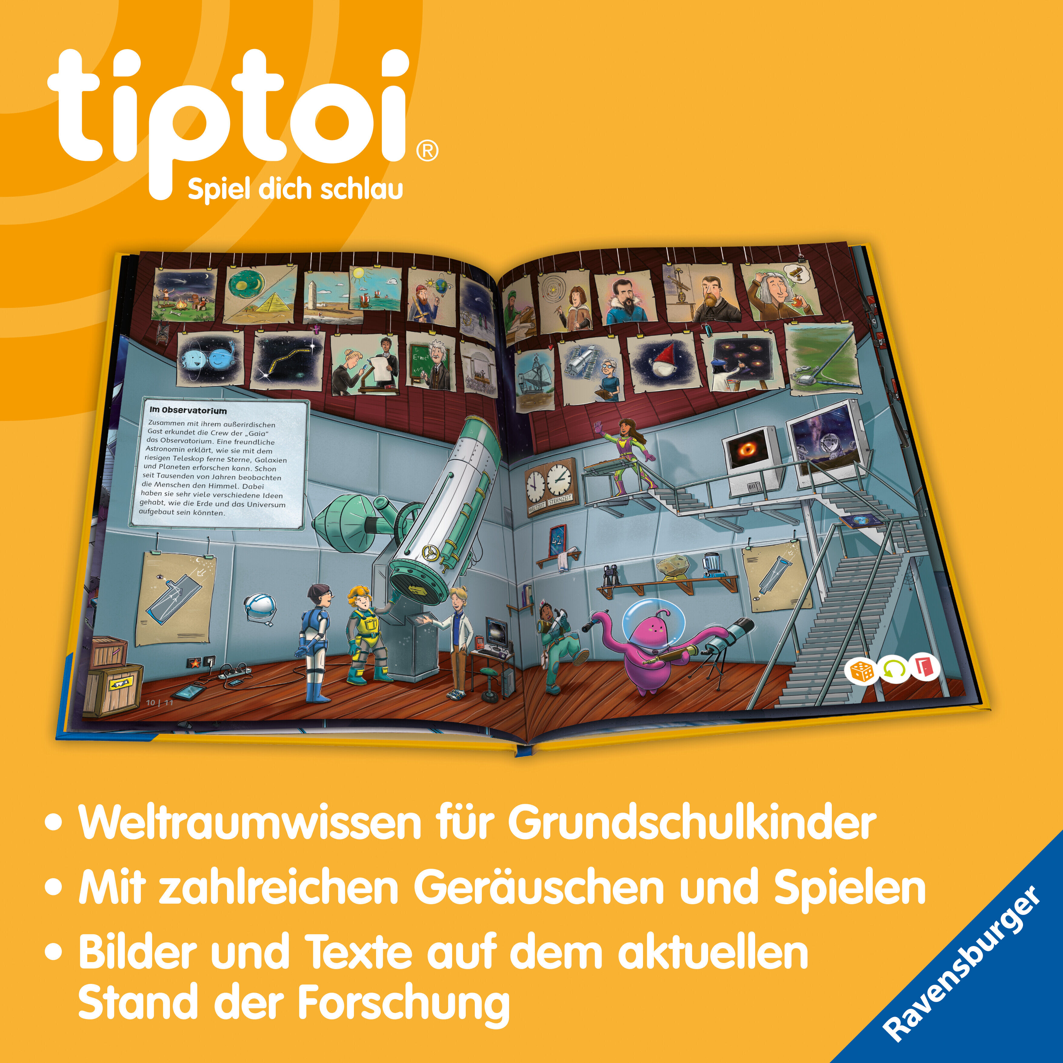 tiptoi® Der Weltraum: Raumfahrt, Sterne und Planeten Eine galaktische Entdeckungsreise durch das Universum Die Crew des Raumschiffes Gaia macht sich bereit zum Landeanflug. Doch was ist das? Ein unbekanntes Flugobjekt nimmt Kurs auf die Erde. Eingebettet in ei...