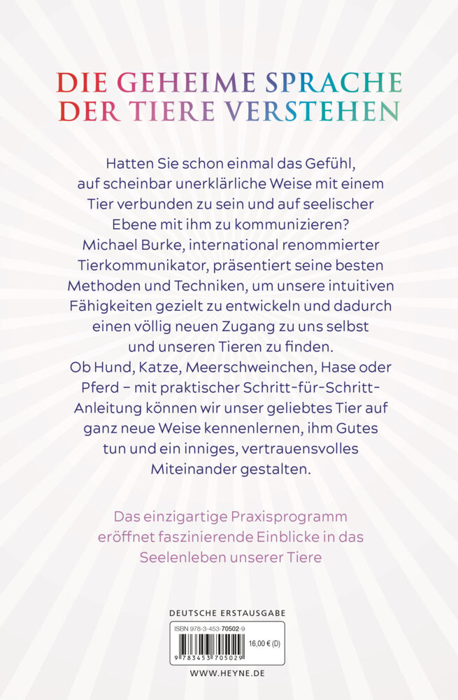 Hatten Sie schon einmal das Gefühl, auf scheinbar unerklärliche Weise mit einem Tier verbunden zu sein und auf seelischer Ebene mit ihm zu kommunizieren? Michael Burke, international renommierter Tierkommunikator, präsentiert seine besten Methoden und Technike...