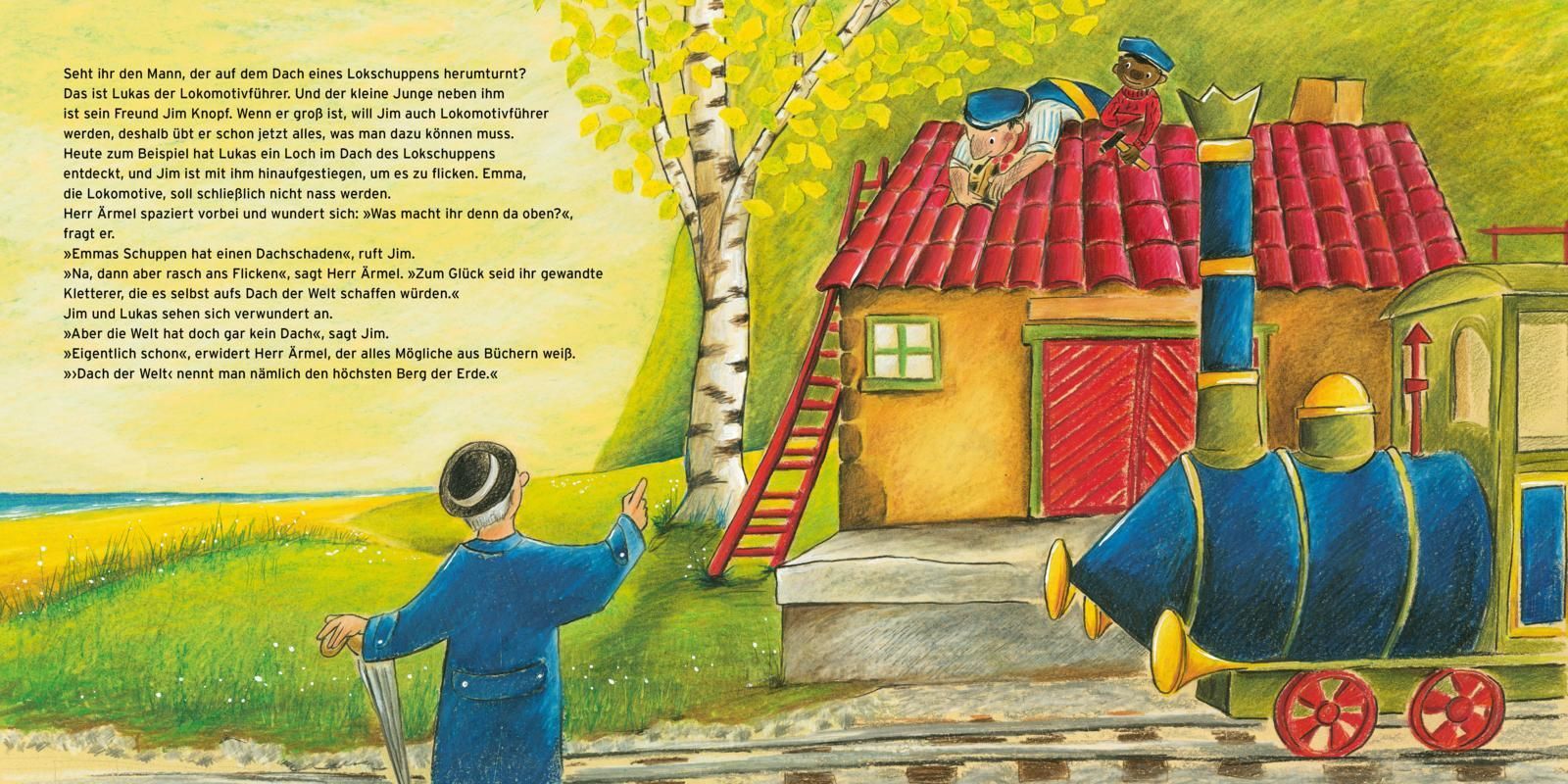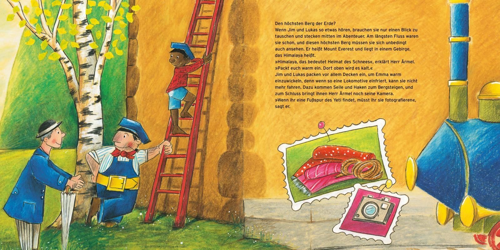Spannendes Bilderbuch nach Motiven von Michael Ende für Kinder ab 4 Jahren. Jim Knopf und Lukas ist kein Fluss zu lang, kein Berg zu hoch und kein Weg zu weit. Auf der Suche nach neuen Abenteuern reisen die beiden in den Himalaya, um sich den höchsten Berg de...