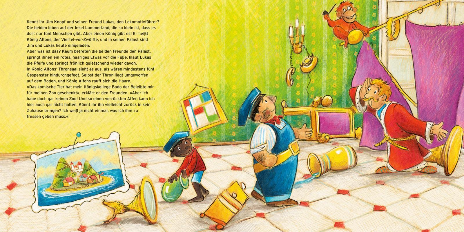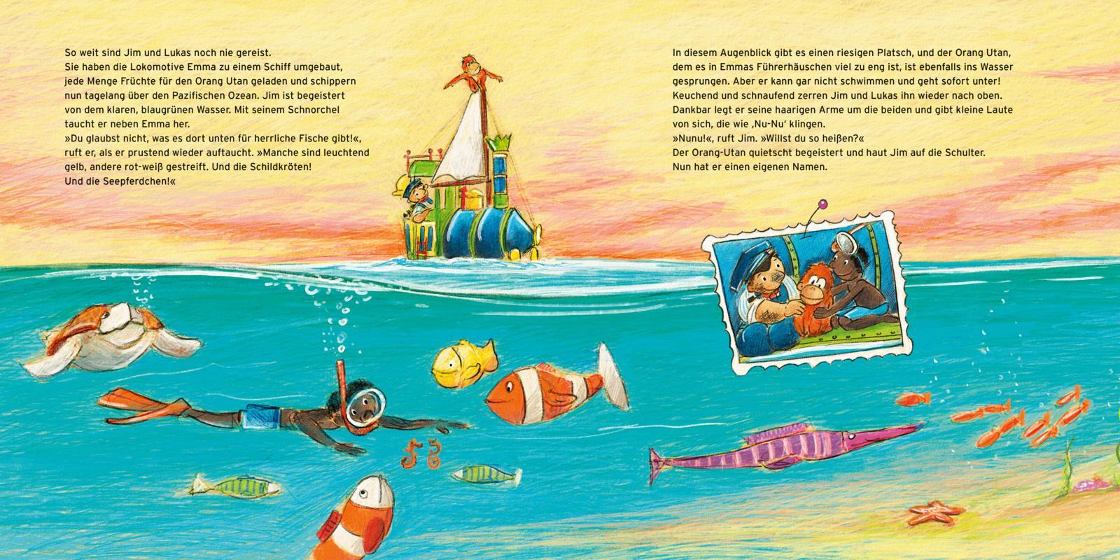 Bilderbuch-Abenteuer für Jungen und Mädchen ab 4 Jahren. Jim Kopf und Lukas der Lokomotivführer reisen von Lummerland in den wilden Dschungel von Borneo, um einen kleinen Orang-Utan nach Hause zu bringen. Zum Glück lernen die beiden auf ihrer Reise neue Freun...