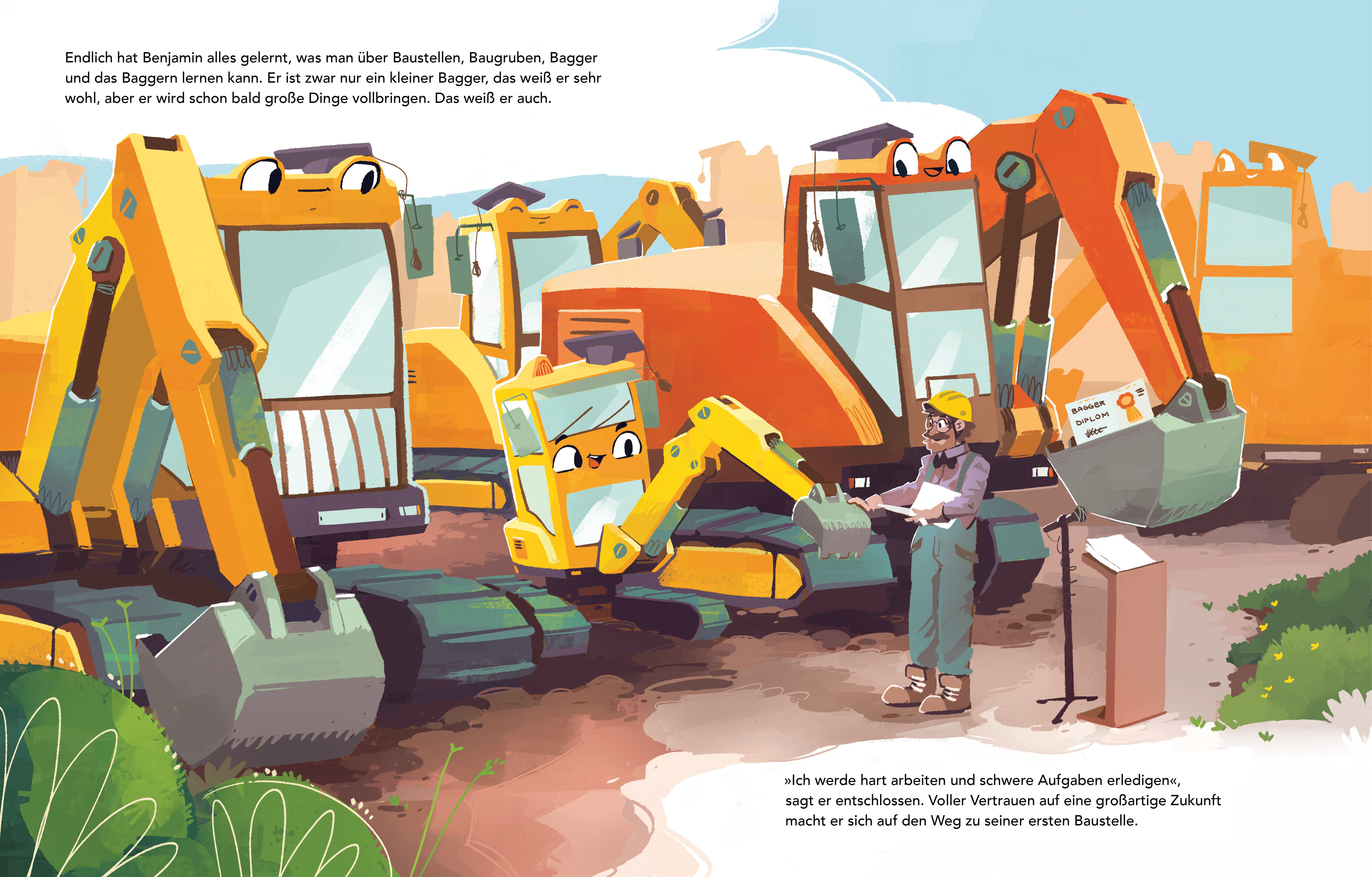 Bagger, Kran & Co ein spannendes Bilderbuch für Kinder ab 4 Jahren, die Fahrzeuge lieben Heute ist ein ganz besonderer Tag für Benjamin Bagger : Er darf zum ersten Mal auf der großen Baustelle mitarbeiten! Benjamin ist so aufgeregt, dass er mit seiner Bro...