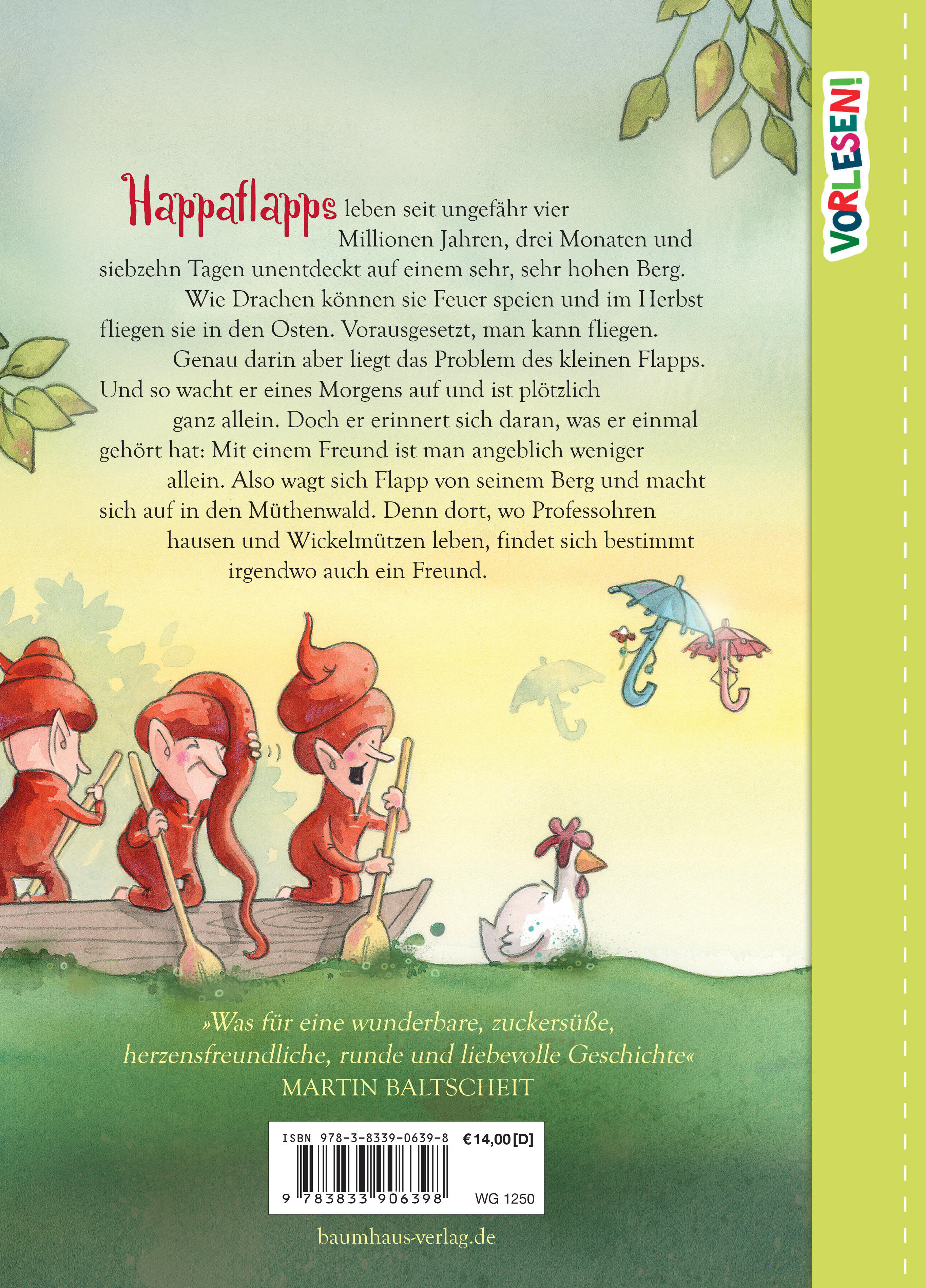 Happaflapps leben seit ungefähr vier Millionen Jahren, drei Monaten und siebzehn Tagen unentdeckt auf einem sehr, sehr hohen Berg. Wie Drachen können sie Feuer speien, und im Herbst fliegen sie weg. Vorausgesetzt, man kann fliegen. Genau darin liegt das Probl...
