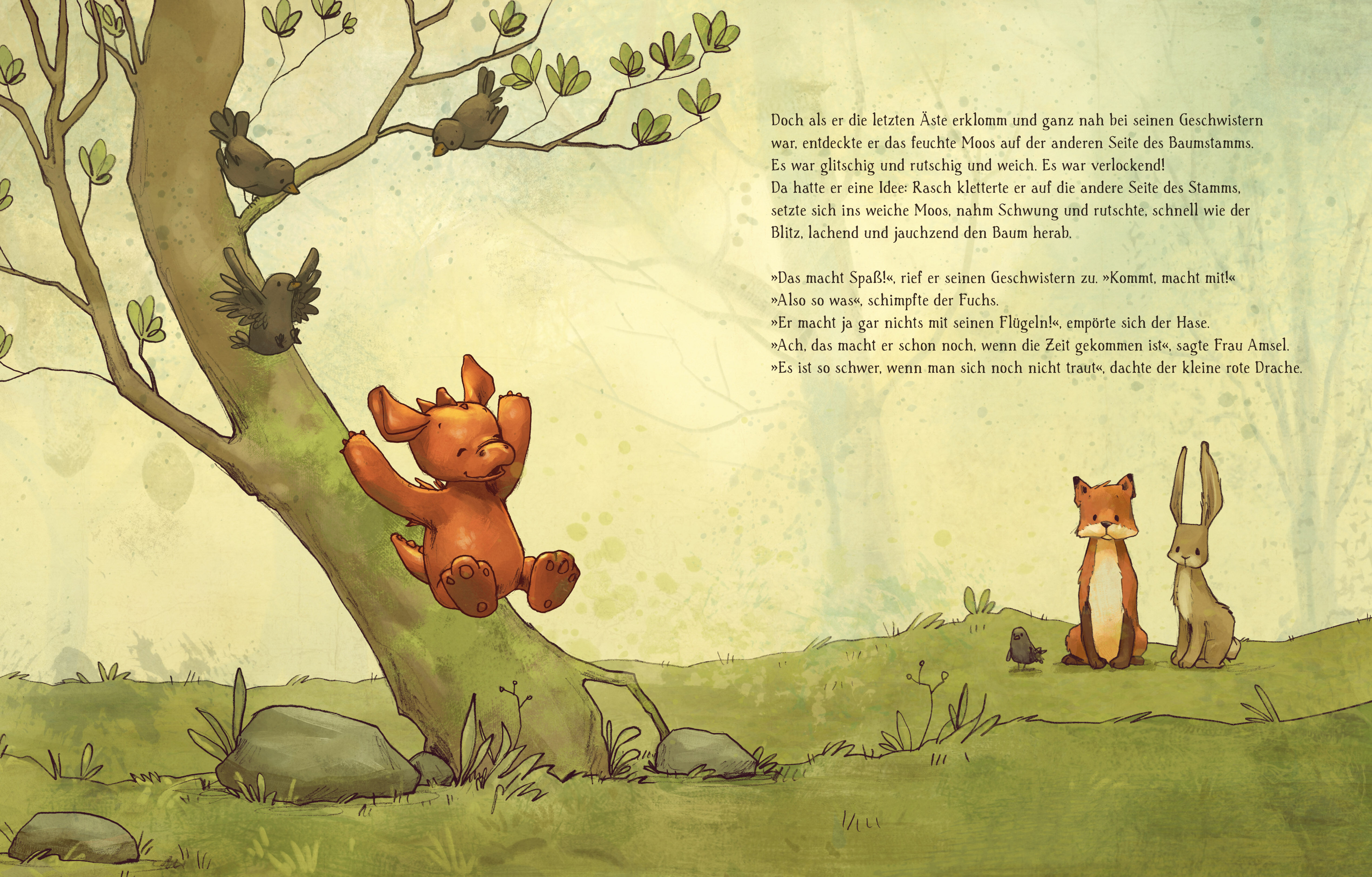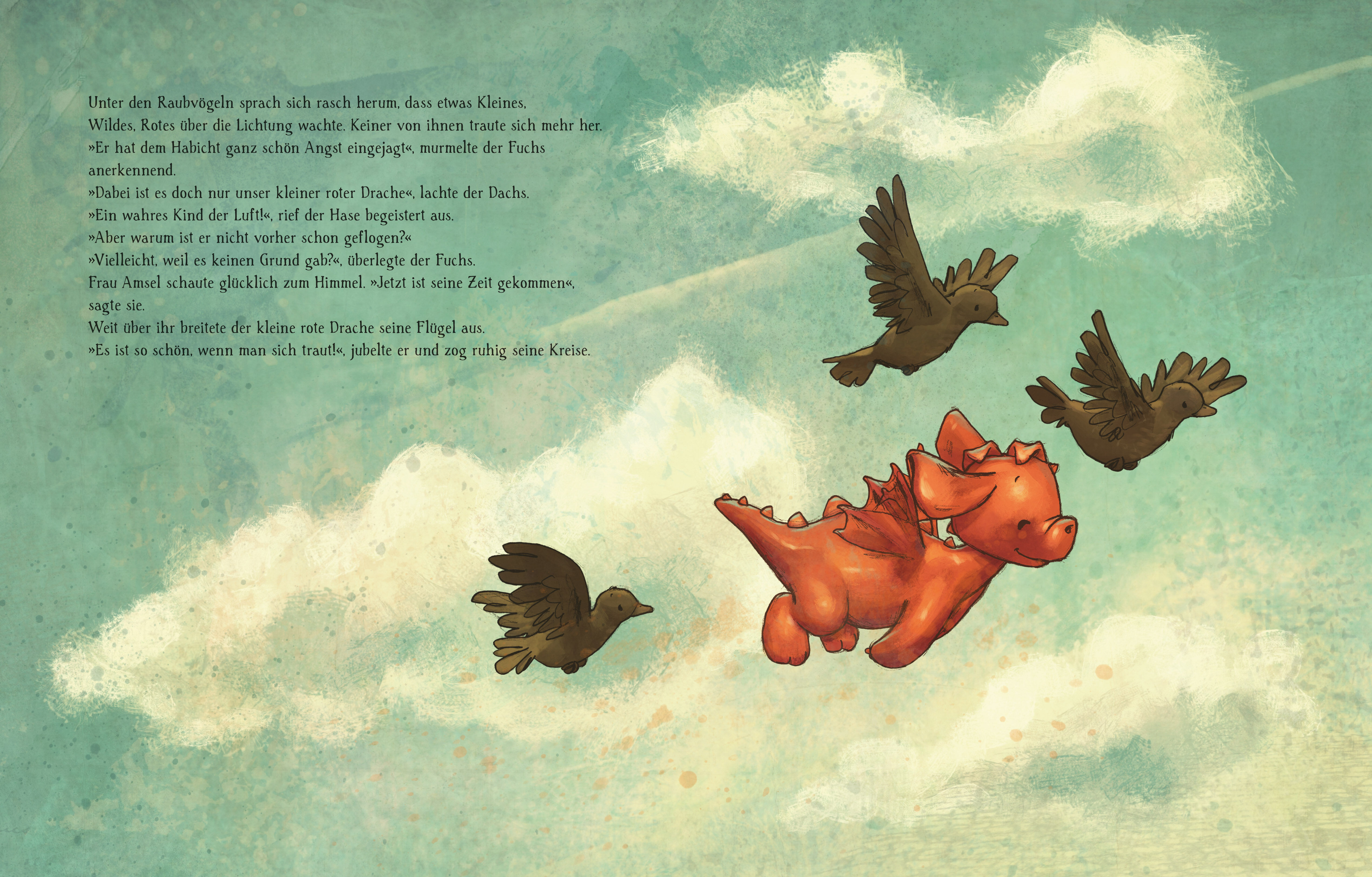 Ein mutmachendes Bilderbuch über Selbstvertrauen und Sich-Zeit-Lassen für Kinder ab 4 Jahren. Der kleine rote Drache schaut sehnsüchtig in den Himmel. Seine Amselgeschwister flattern mittlerweile alle wie die Weltmeister, nur er ist noch zu ängstlich zum Flie...