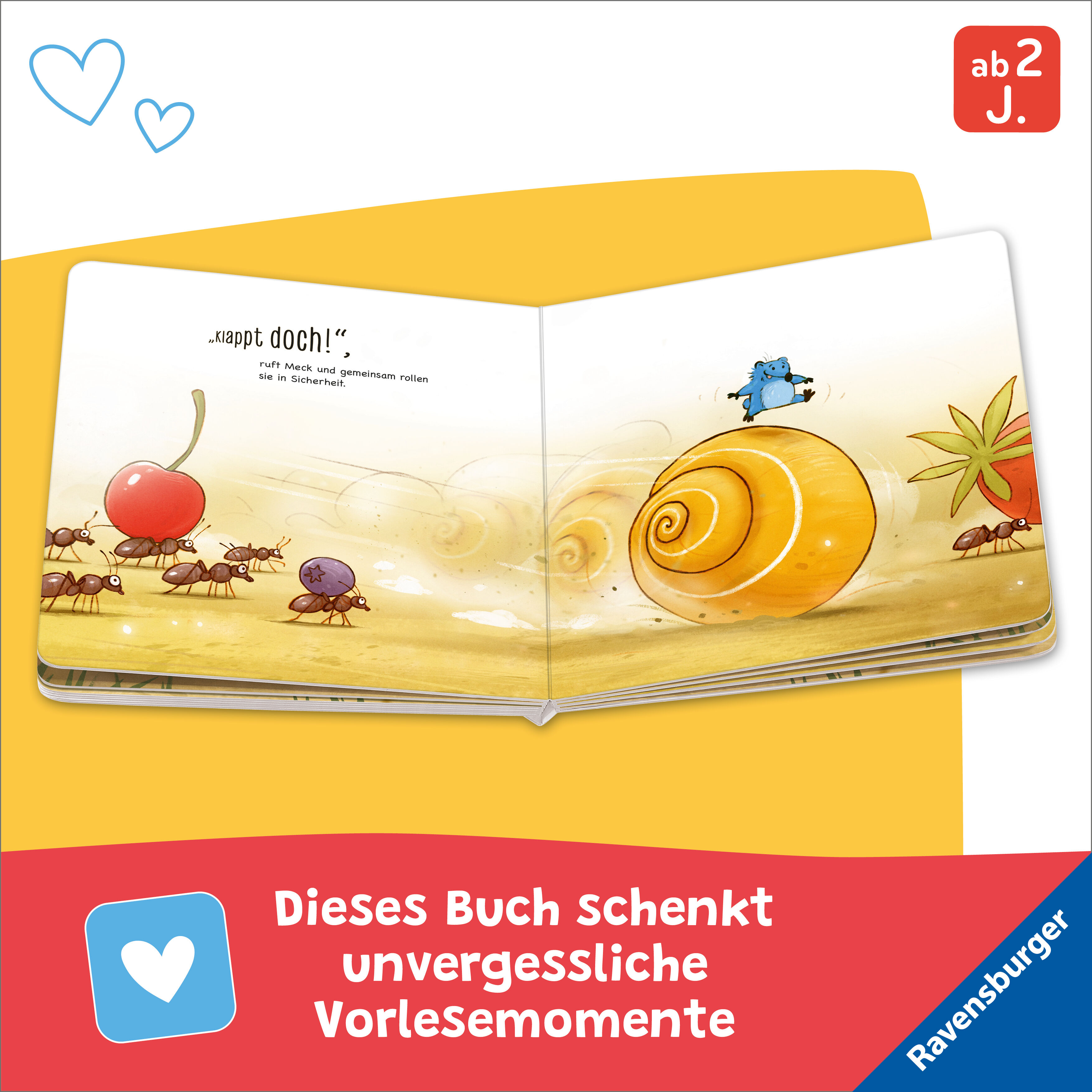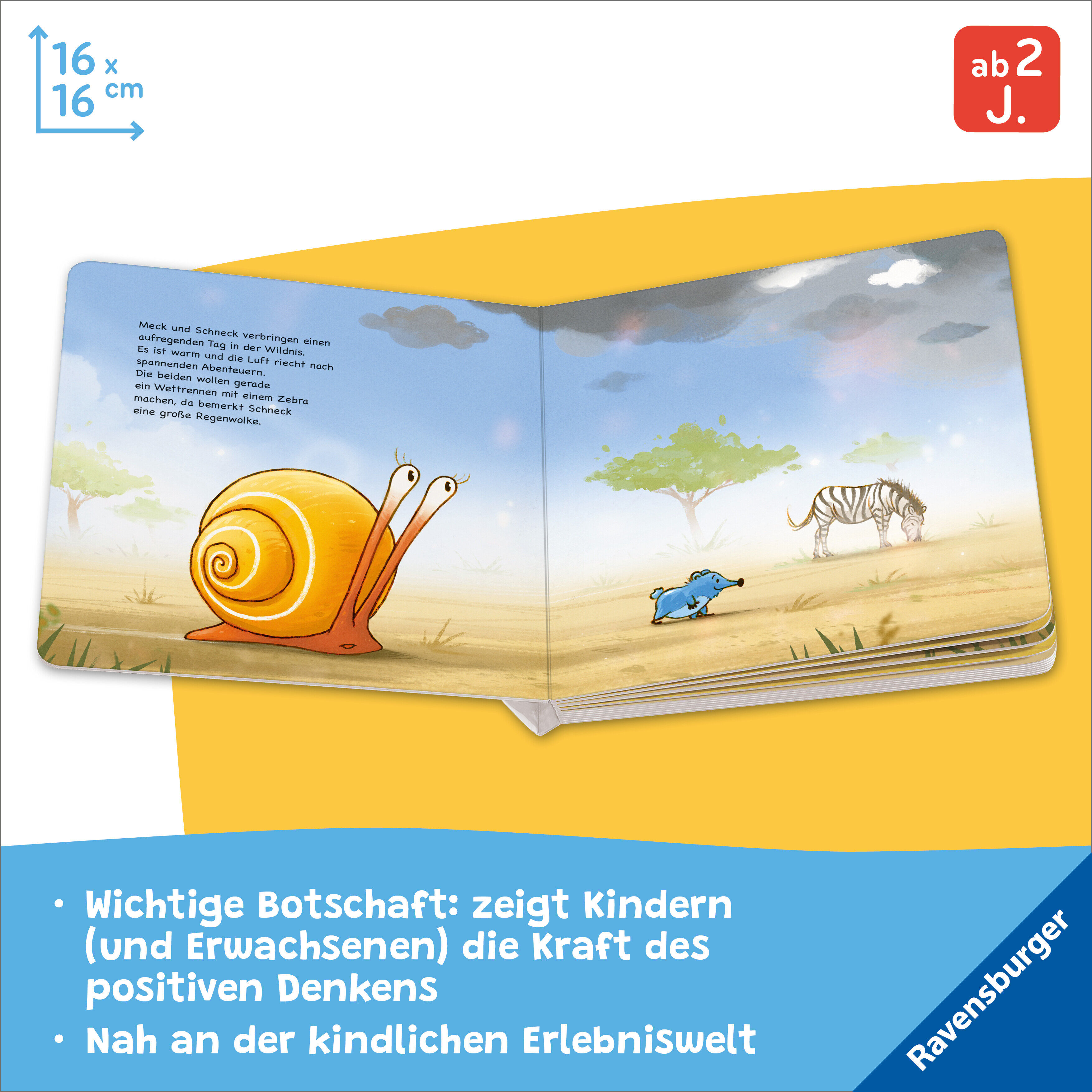 Geht nicht gibt's nicht! Schneck entdeckt eine große Regenwolke mit Blitz und Donner am Himmel. Nun aber schnell zurück zur Höhle. Aber auf ihrem Weg ins sichere Versteck warten ungeahnte Hindernisse auf die Freunde. Was kann eine kleine Schnecke dagegen bloß ...