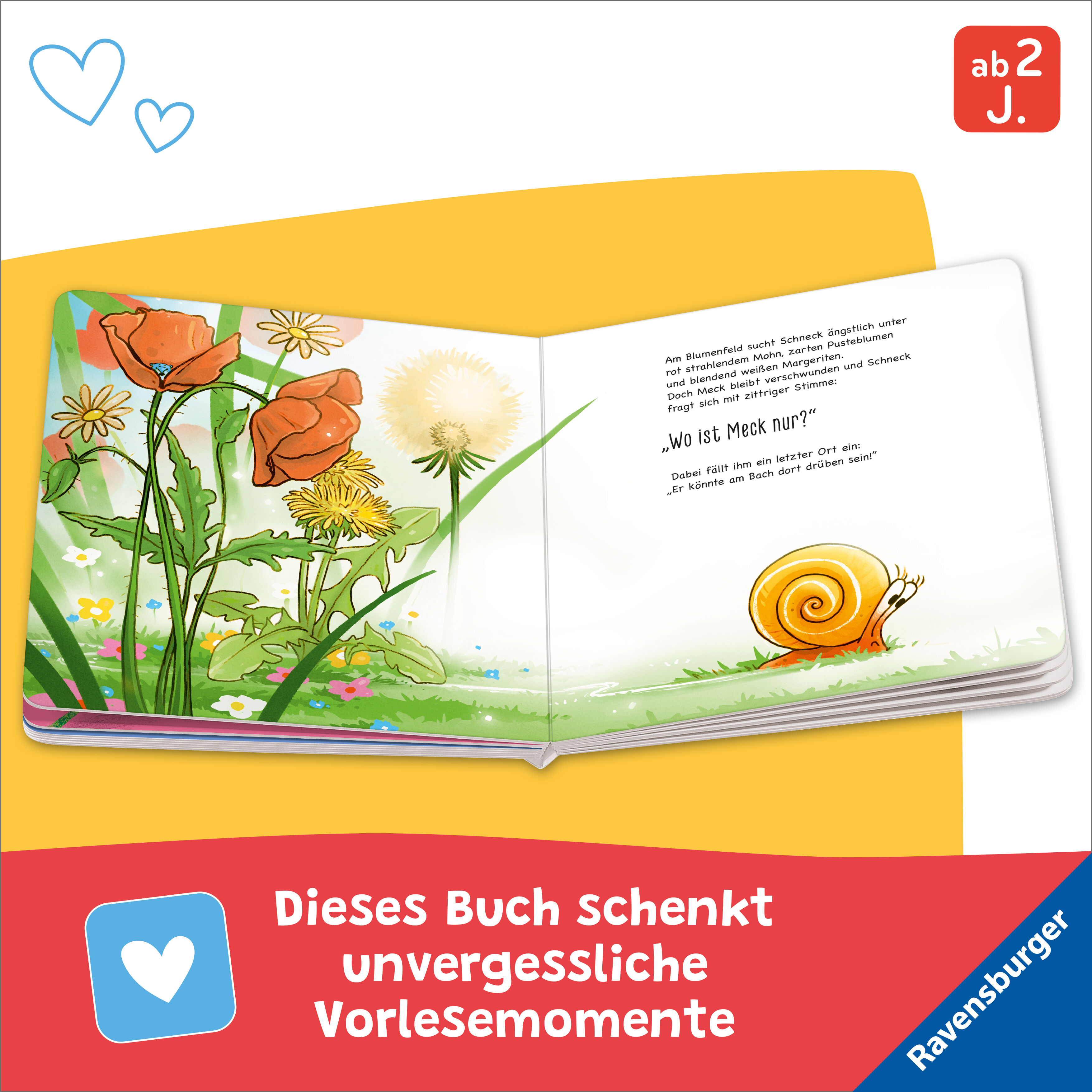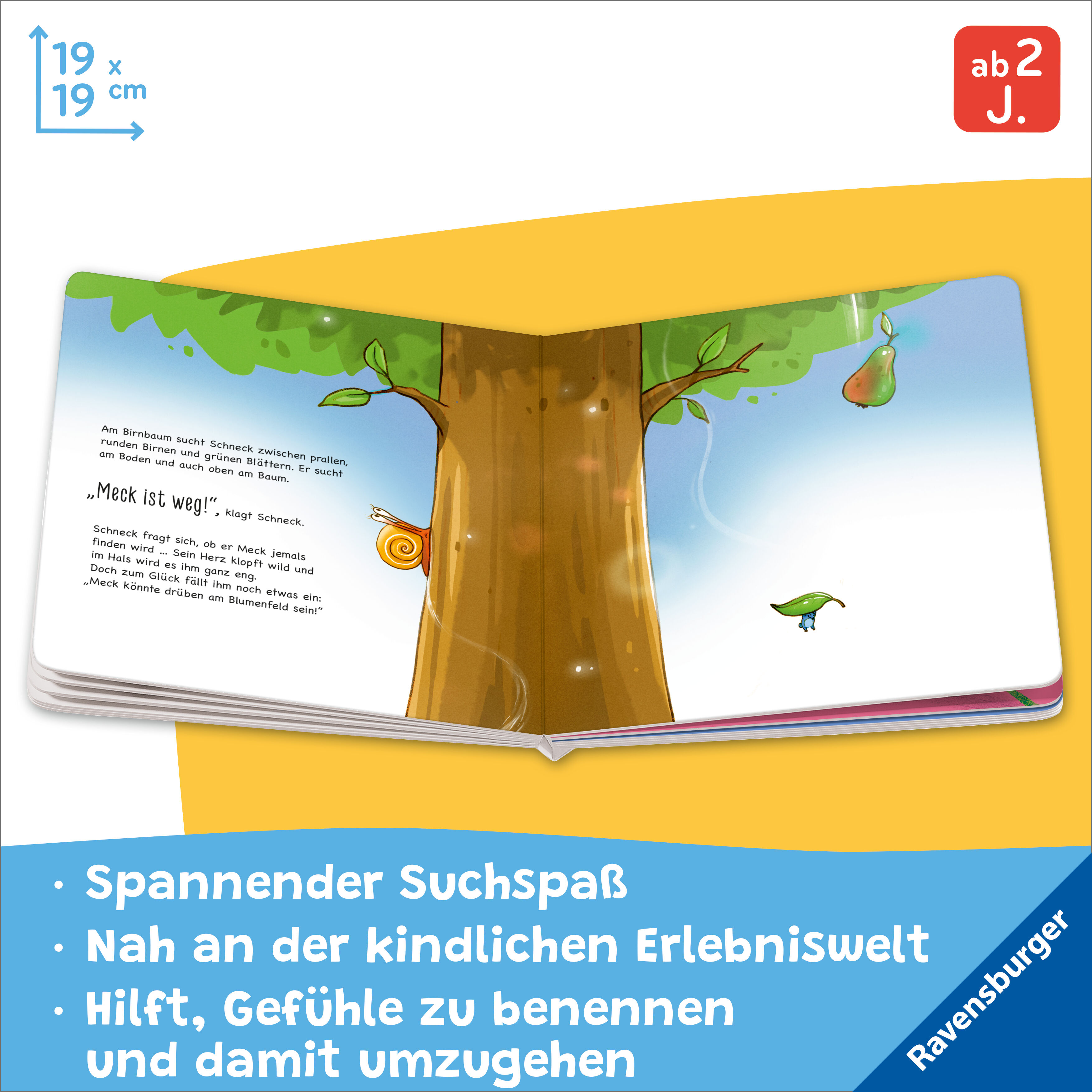 Oh Schreck, Meck ist weg! Gerade noch spielen Meck und Schneck Schattenfangen, da ist Meck auf einmal verschwunden. Wo steckt Meck bloß? Schneck sucht überall: am Blaubeerstrauch, am Birnbaum und am Bach. Doch sein bester Freund ist nirgends zu entdecken. Oder...
