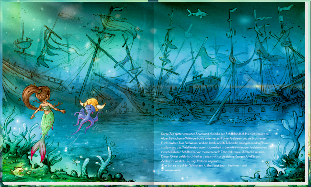 Was für ein langweiliger Tag! Selbst in Aquamaris, der sagenumwobenen Stadt auf dem Meeresgrund, ist heute nicht viel los. Doch dann erfahren Snorri, der sechsarmige Oktopus, und seine Freundin, das Meermädchen Aquina, von einem echten Goldschatz. Im Wrack der...