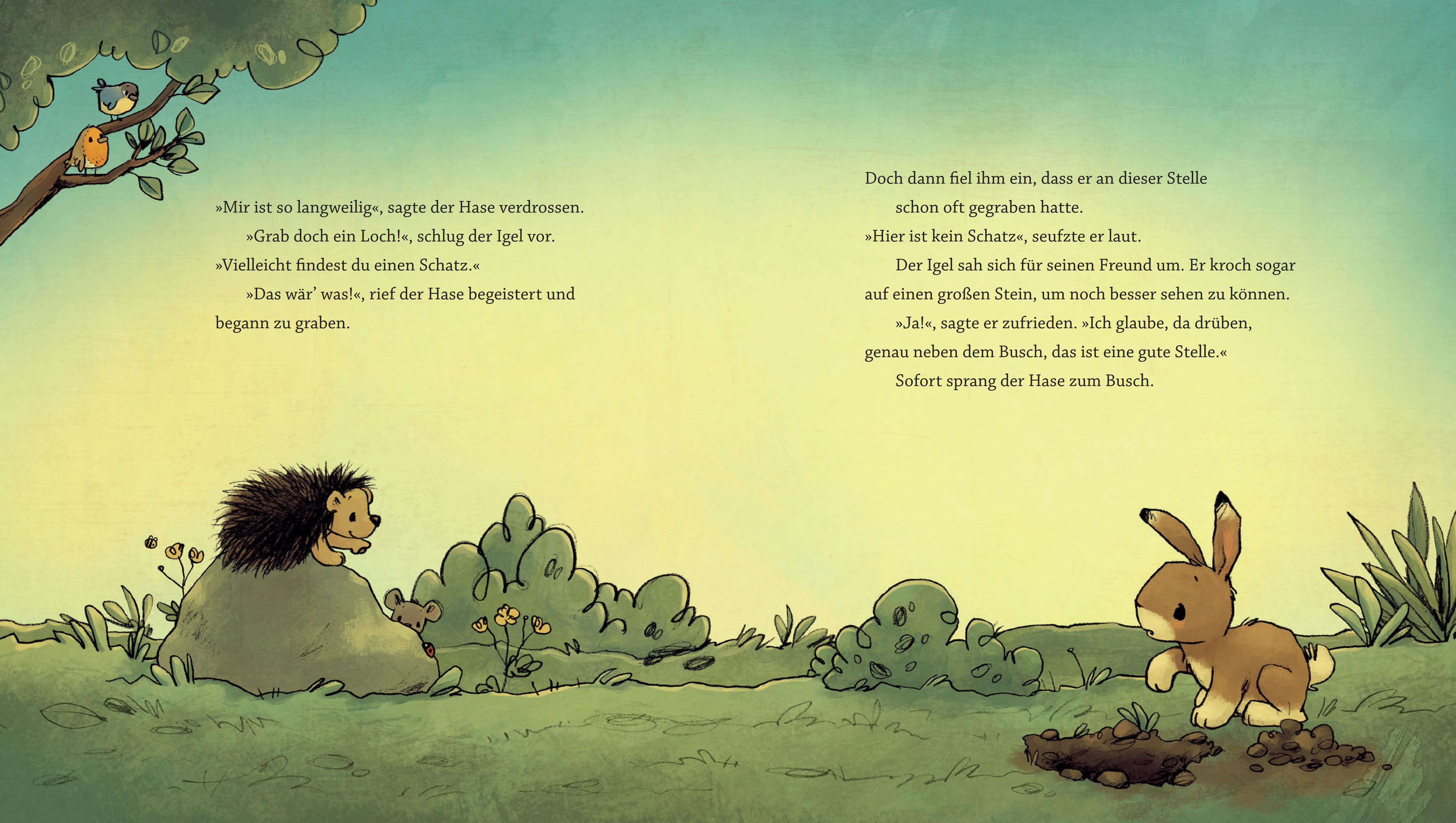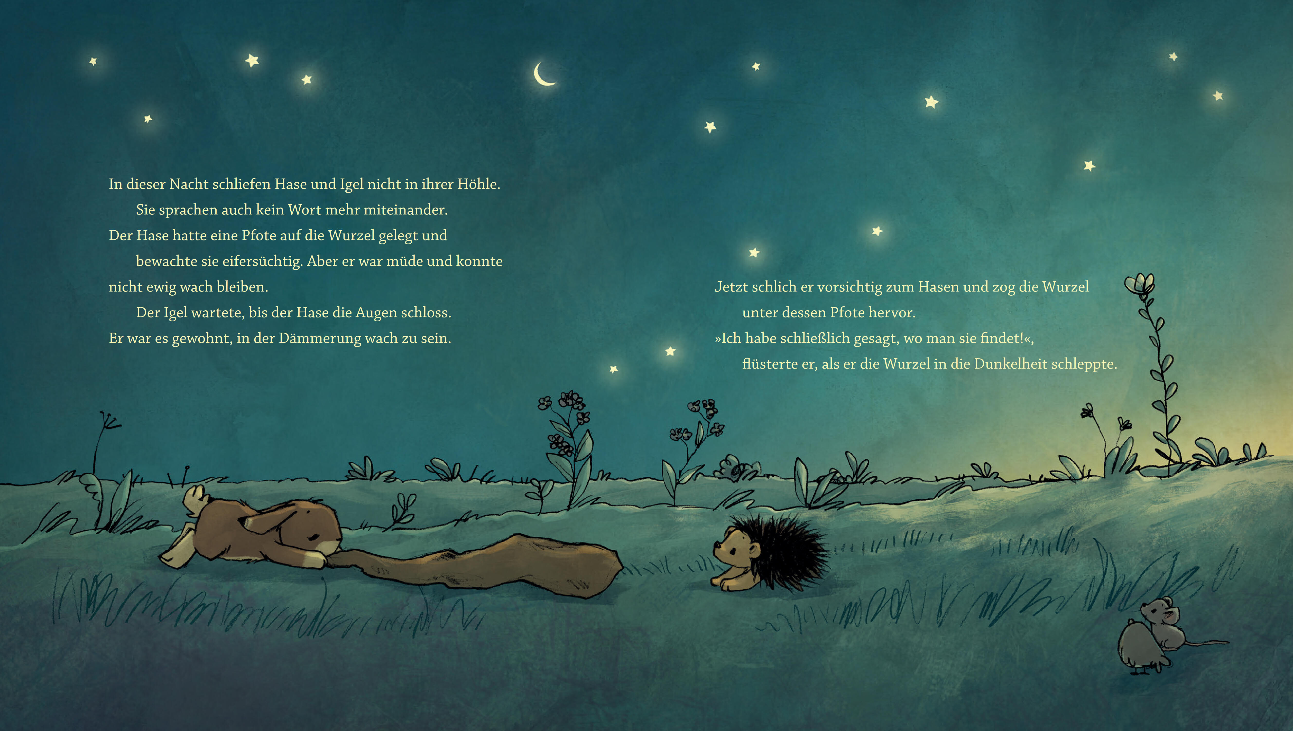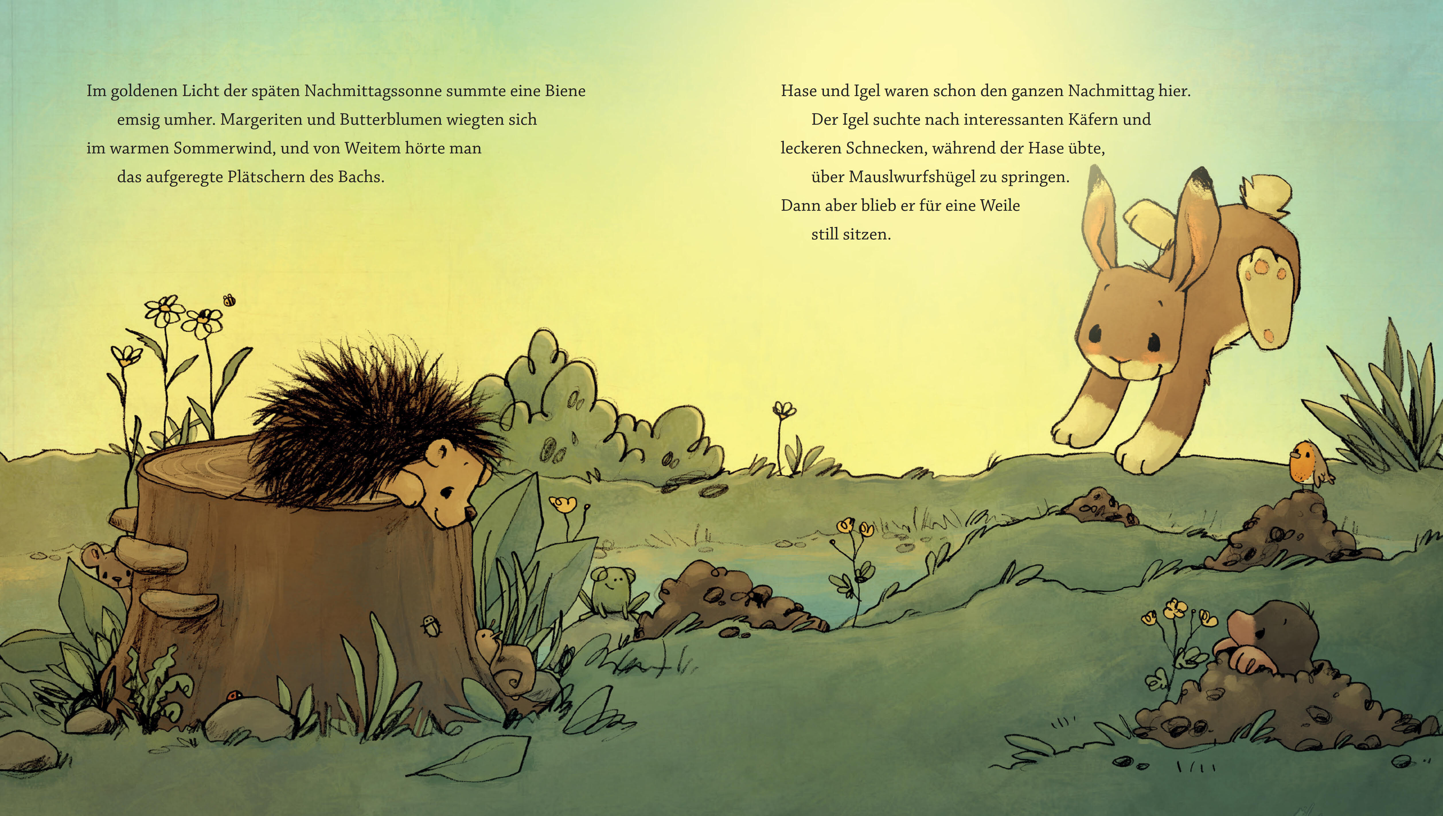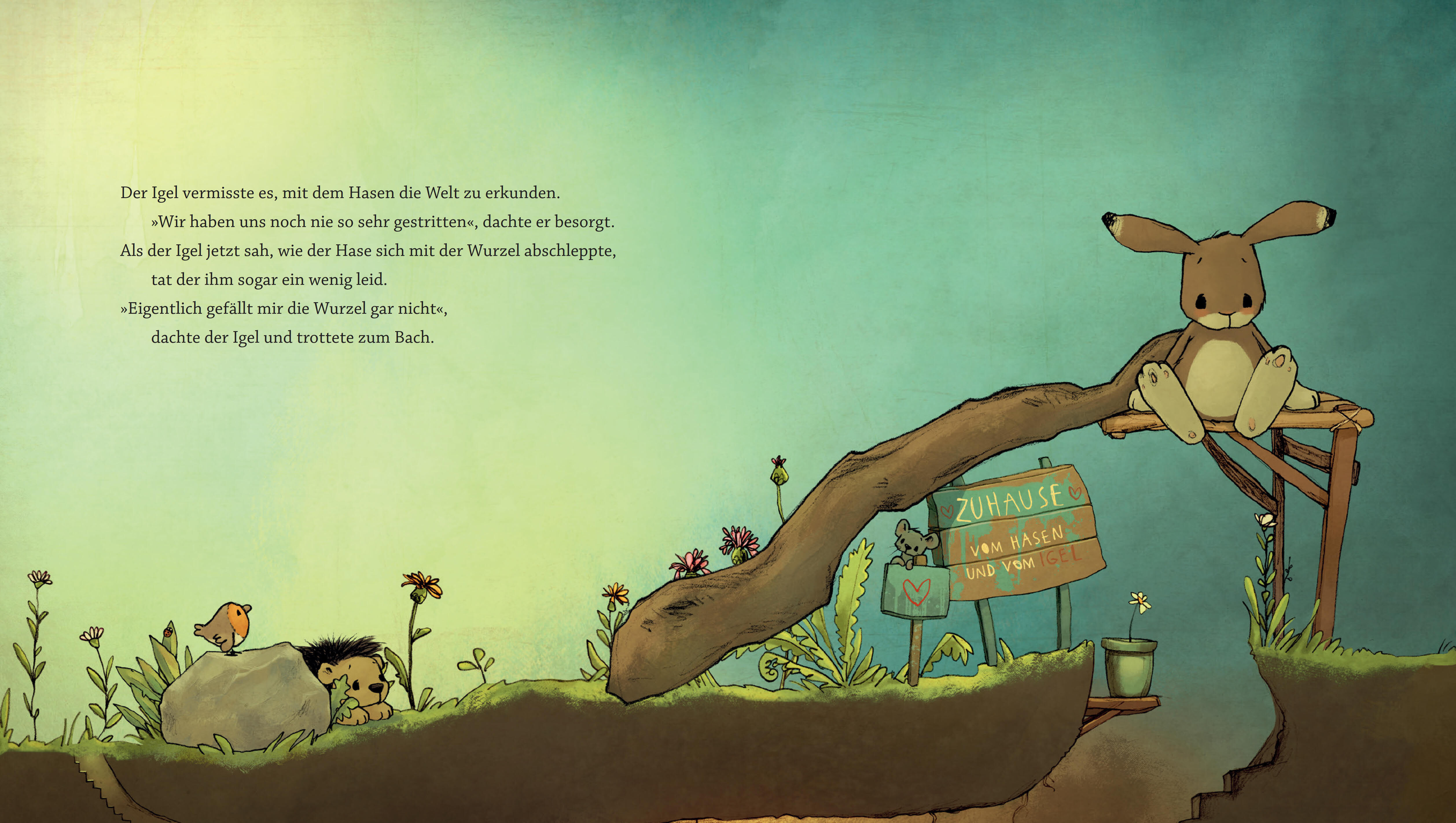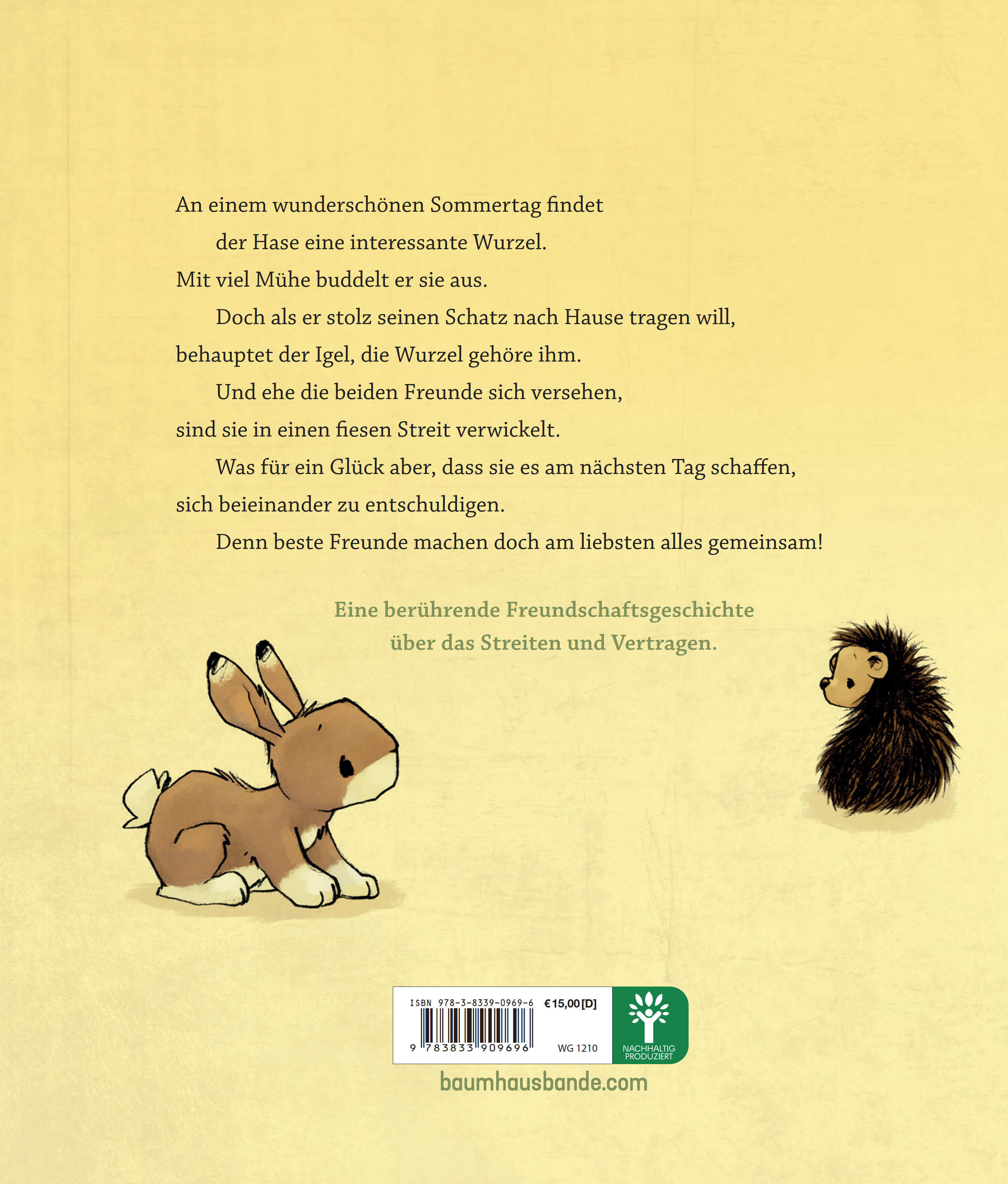 Es ist ein wunderschöner Sommertag und die Margeriten wiegen sich im Wind, als der Hase eine interessante Wurzel findet. Mit viel Mühe buddelt er sie aus. Doch als er stolz seinen Schatz nach Hause tragen will, behauptet der Igel, die Wurzel gehöre ihm. Und eh...