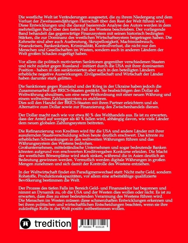 Die westliche Welt ist Veränderungen ausgesetzt, die zu ihrem Niedergang und dem Verlust der Zweitausendjährigen Herrschaft über den Rest der Welt führen wird. Diese Entwicklungen und die darauf basierende Analyse des Autors werden in dem mehrteiligen Buch übe...