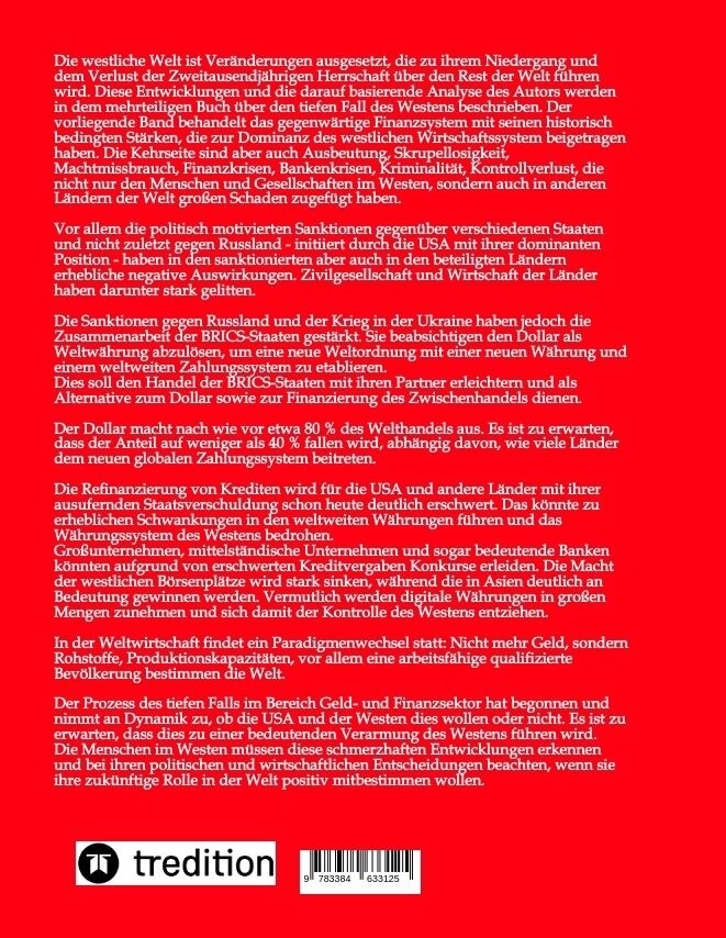 Die westliche Welt ist Veränderungen ausgesetzt, die zu ihrem Niedergang und dem Verlust der Zweitausendjährigen Herrschaft über den Rest der Welt führen wird. Diese Entwicklungen und die darauf basierende Analyse des Autors werden in dem mehrteiligen Buch übe...