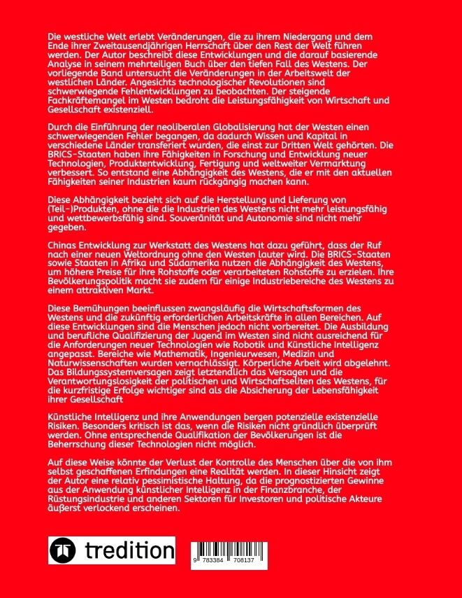 Die westliche Welt erlebt Veränderungen, die zu ihrem Niedergang und dem Ende ihrer Zweitausendjährigen Herrschaft über den Rest der Welt führen werden. Der Autor beschreibt diese Entwicklungen und die darauf basierende Analyse in seinem mehrteiligen Buch über...