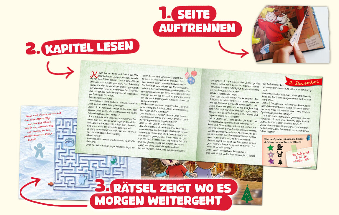 Escape-Adentskalender für Kinder: 24 spannende Kapitel und knifflige Rätsel begleiten die Geschwister Felix und Olivia auf ihrer magischen Reise im Weihnachtshotel. Für Kinder ab 8 Jahren perfekt zum Mitmachen, Knobeln und Rätseln in der Vorweihnachtszeit. Ein...