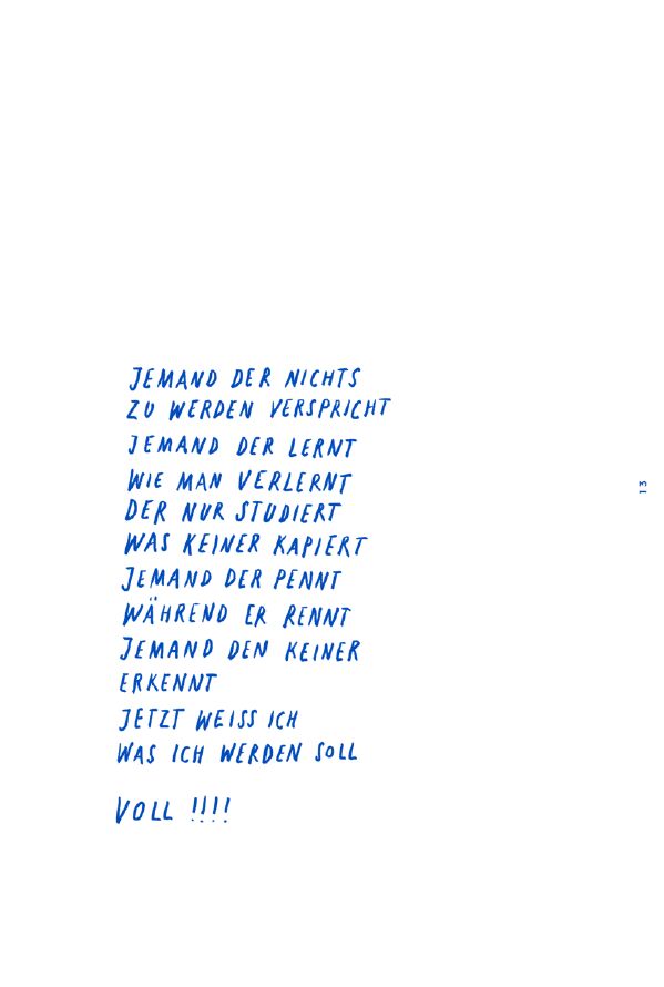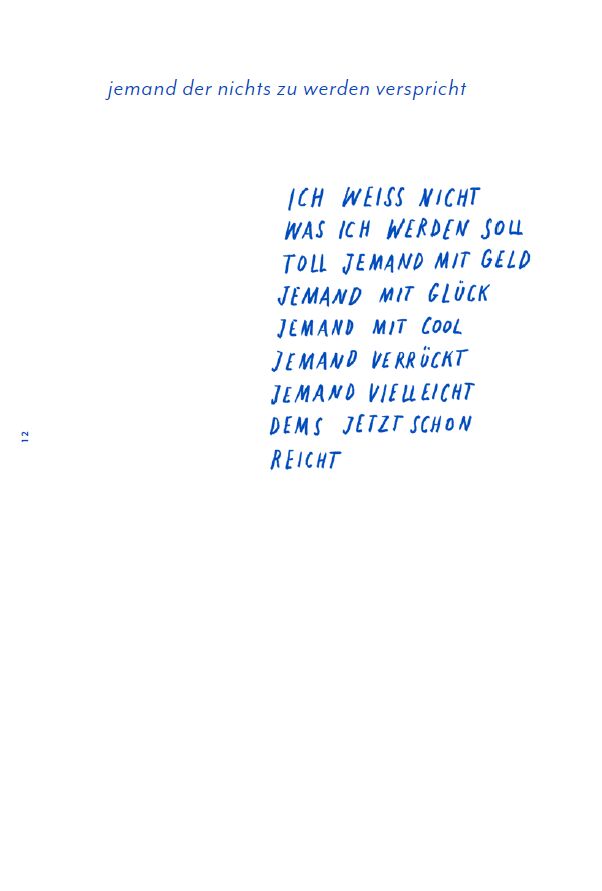 manchmal ist der tag zu lang. zu kurz. zu leer. zu flimmernd. und was soll ich werden, alles oder nichts? bin ich ein flügelleichtes ich, eher wesenlich?bin alt und jung, bin fremd und weich. die anderen sind da, mal fremd, mal nah.und doch, versteht mich jema...