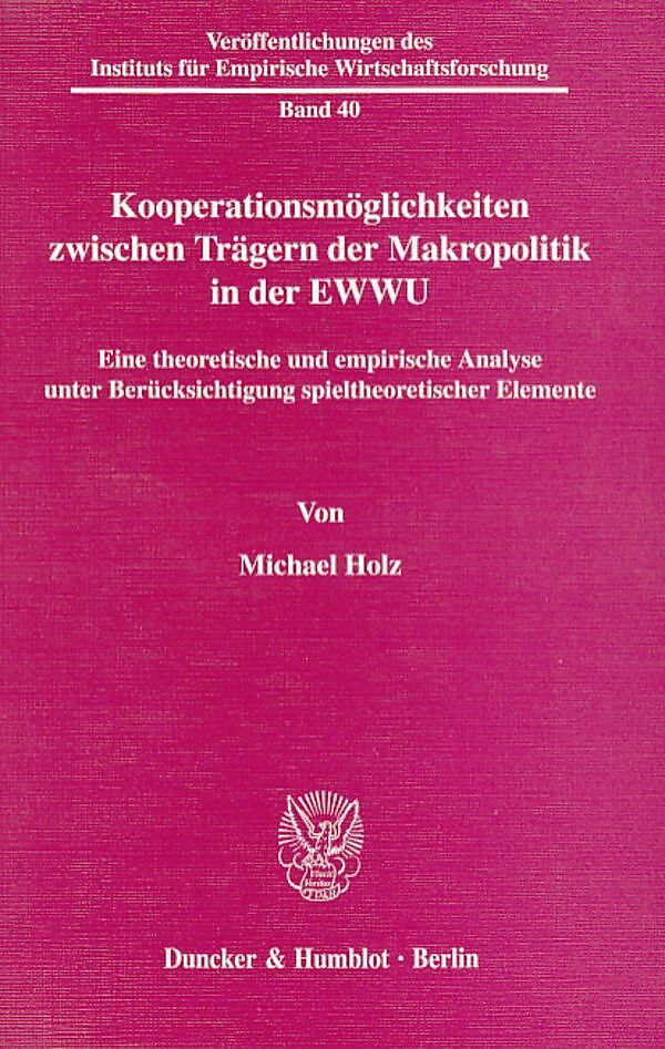 Ziel dieser Arbeit ist es, Möglichkeiten einer wohlfahrtssteigernden Kooperation zwischen Trägern der makroökonomischen Stabilisierungspolitik in der EWWU aufzuzeigen. Die Betrachtung von Geld-, Finanz- und Lohnpolitik wird dabei auch unter spieltheoretischen ...