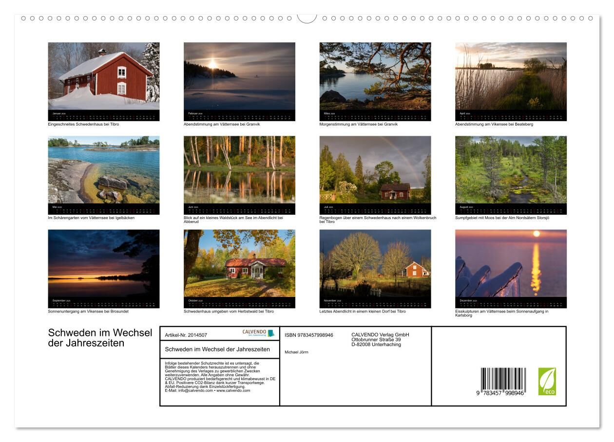 Schweden im Wechsel der Jahreszeiten (hochwertiger Premium Wandkalender 2026 DIN A2 quer), Kunstdruck in Hochglanz