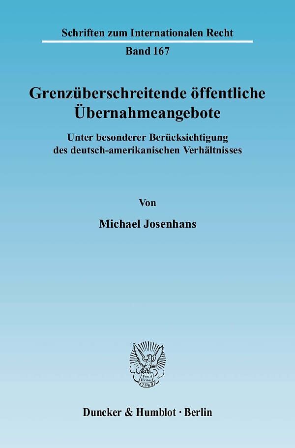 Die Internationalisierung der Kapitalmärkte sowie die internationale Verbreitung von Übernahmeangeboten führen zunehmend zu grenzüberschreitenden Angeboten, die zur Klärung vieler Fragen Anlass geben. Nicht aufeinander abgestimmte, nationale Kollisionsnormen k...