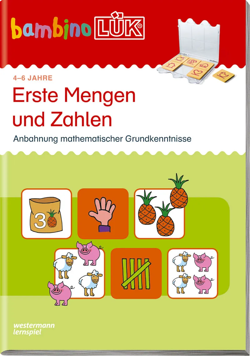 Das bambinoLÜK-Heft Erste Mengen und Zahlen ermöglicht Kindern ab 4 Jahren erste Mengen- und Größenbezeichnungen im Zahlenraum bis 6 zu entdecken. Die begleitenden Illustrationen sorgen dabei für eine optimale Veranschaulichung. So werden die Kinder bei der E...