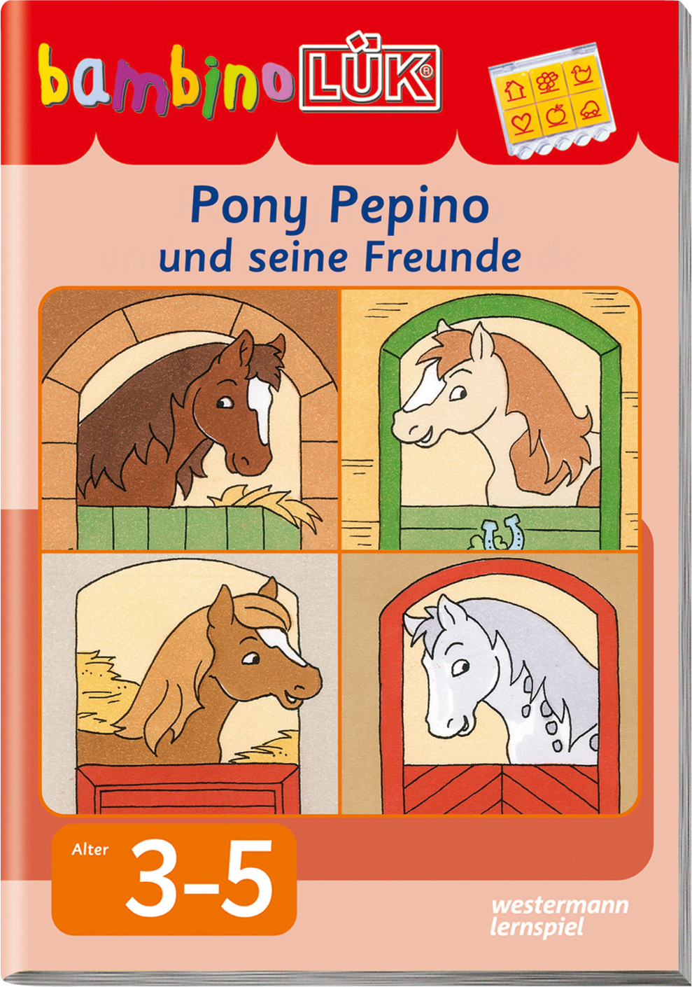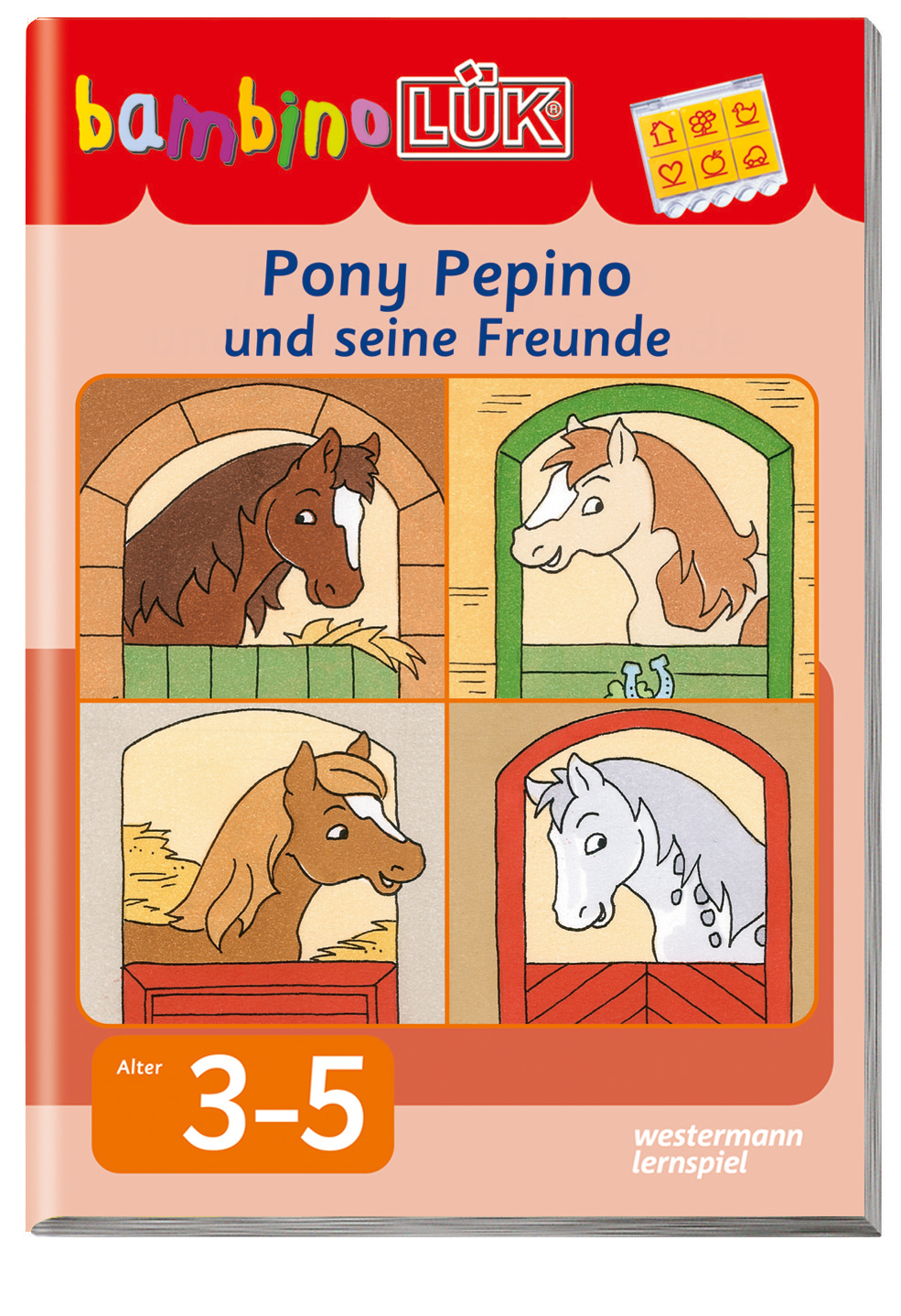 Ponys füttern, Hufeisen vergleichen, die richtige Kleidung zum Reiten anziehen: Das bambinoLÜK-Übungsheft Pony Pepino und sein Freunde ist mit seinen logischen Zuordnungsübungen das perfekte Kopftraining für kleine Pferdenarren. INHALT Auf dem Ponyhof ? Suche...