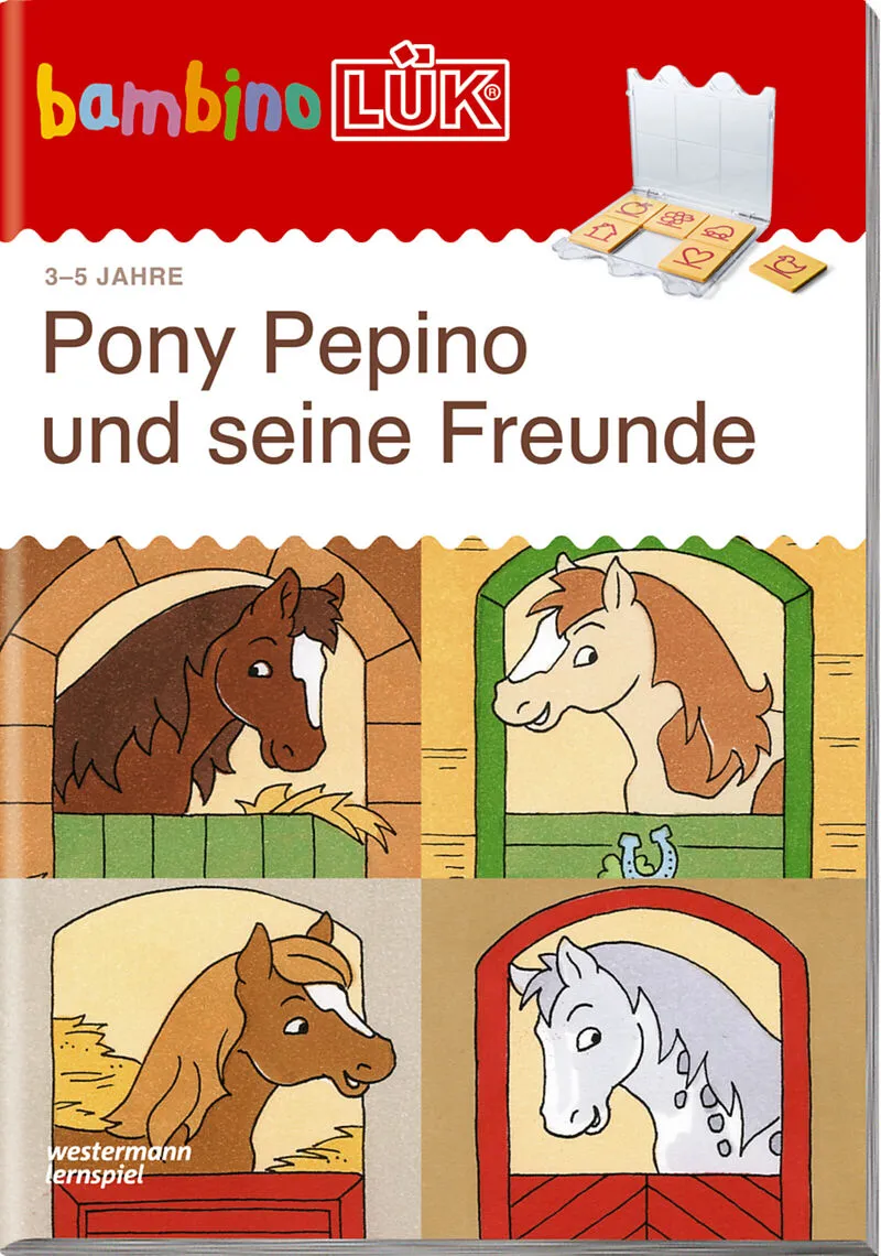 Ponys füttern, Hufeisen vergleichen, die richtige Kleidung zum Reiten anziehen: Das bambinoLÜK-Übungsheft Pony Pepino und sein Freunde ist mit seinen logischen Zuordnungsübungen das perfekte Kopftraining für kleine Pferdenarren. INHALT Auf dem Ponyhof ? Suche...